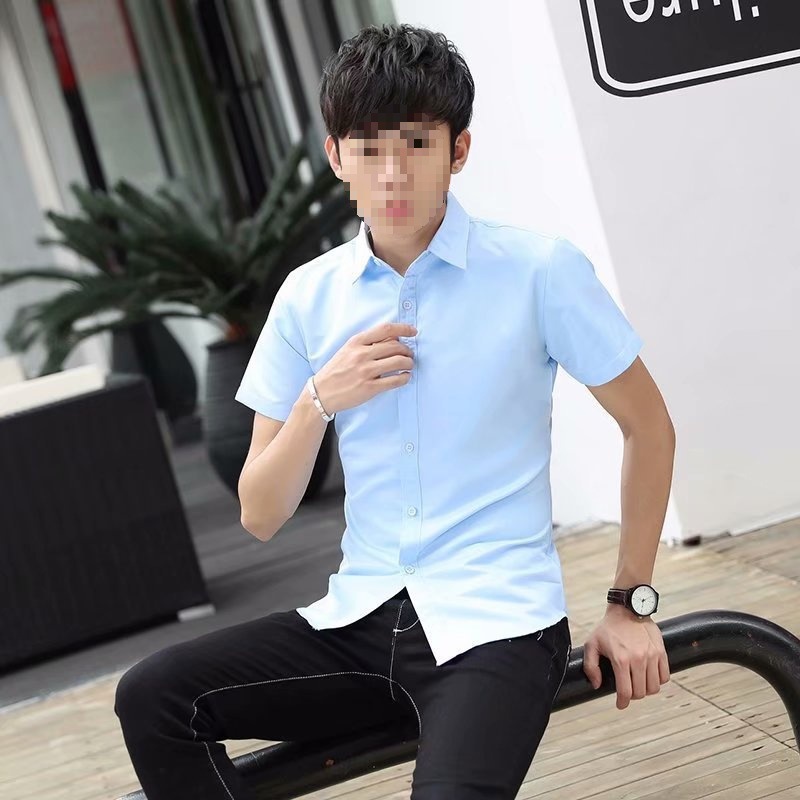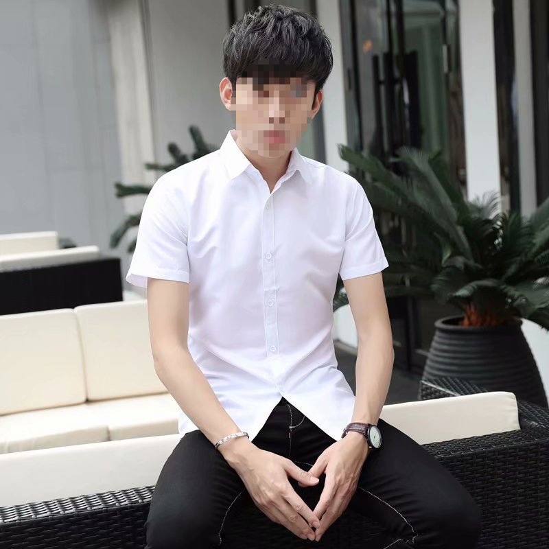 순수 화이트 셔츠 남성용 긴 반팔 셔츠 슬림핏 한국식 청소년 캐주얼 셔츠 비즈니스 작업복 봄과 가을스토어 가기