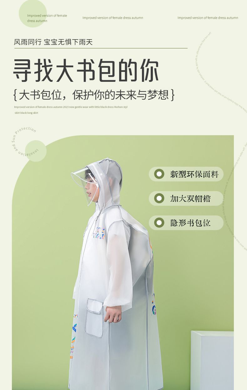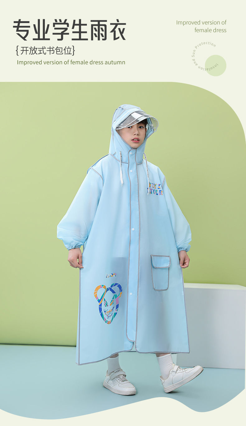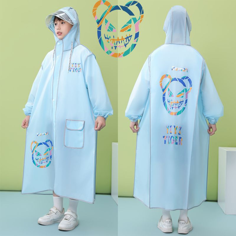 어린이 비옷 소년 소녀 학생 학교 패션 귀여운 중대형 어린이 긴 전신 비 방지 투명 판초