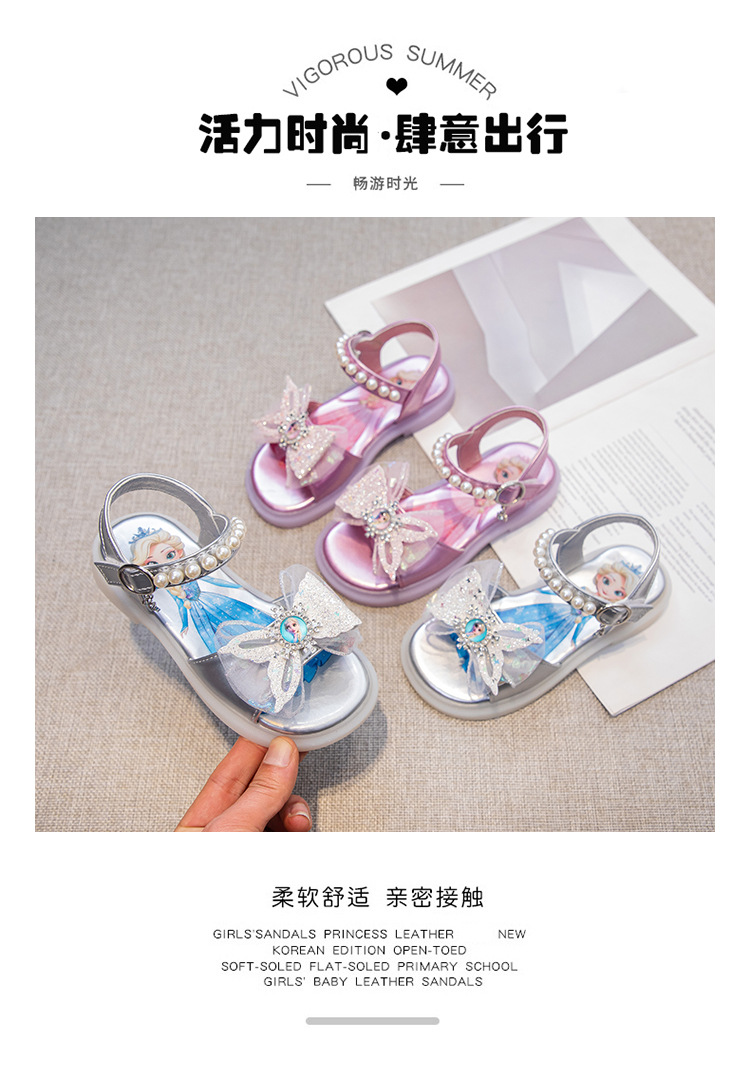 엘사 소녀 샌들 2025 새로운 여름 부드러운 밑창 유행 어린 소녀 아기 크리스탈 공주 신발 3-6 세스토어 가기