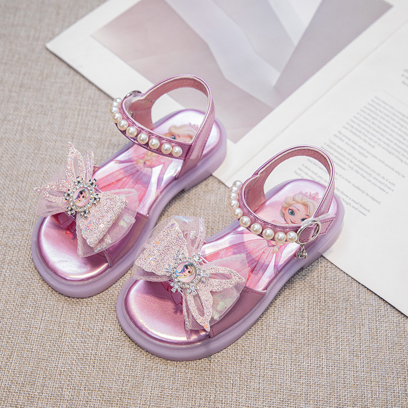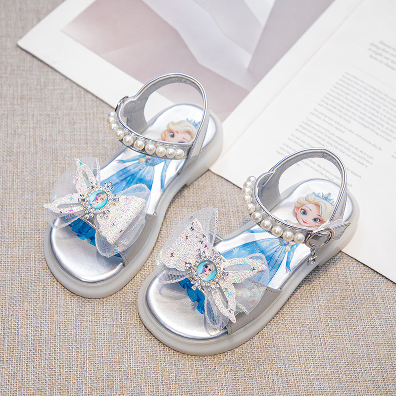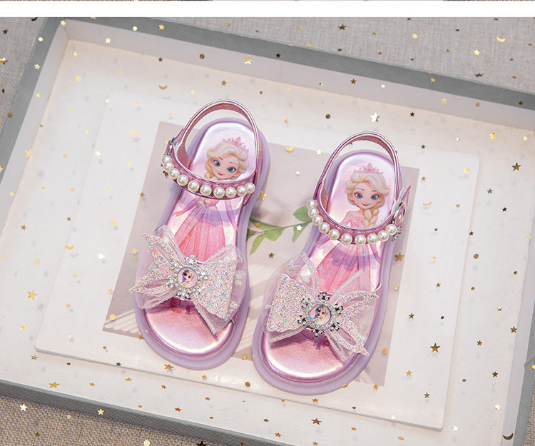 엘사 소녀 샌들 2025 새로운 여름 부드러운 밑창 유행 어린 소녀 아기 크리스탈 공주 신발 3-6 세
