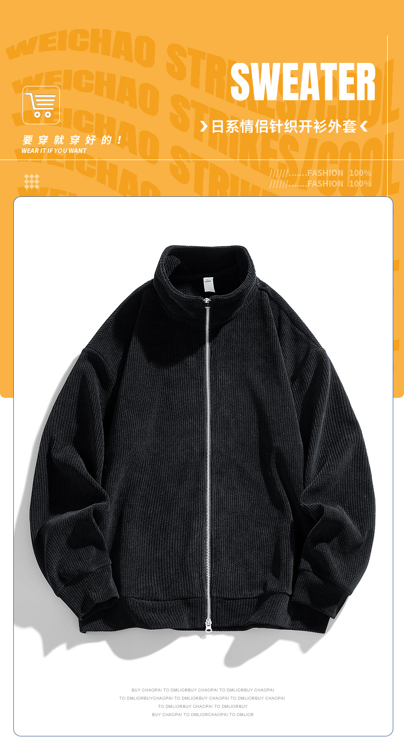 수직 칼라 캐주얼 남성 트렌디 브랜드 니트 더블 지퍼 스웨터 2024 봄과 가을 새로운 마이크로 느슨한 카디건 재킷스토어 가기