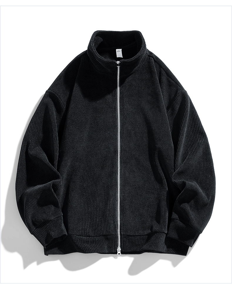 수직 칼라 캐주얼 남성 트렌디 브랜드 니트 더블 지퍼 스웨터 2024 봄과 가을 새로운 마이크로 느슨한 카디건 재킷