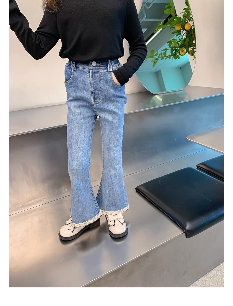 소녀 봄 청바지 2025 새로운 어린이 바지 봄과 가을 서양 스타일 어린 소녀의 봄과 가을 캐주얼 플래 바지스토어 가기