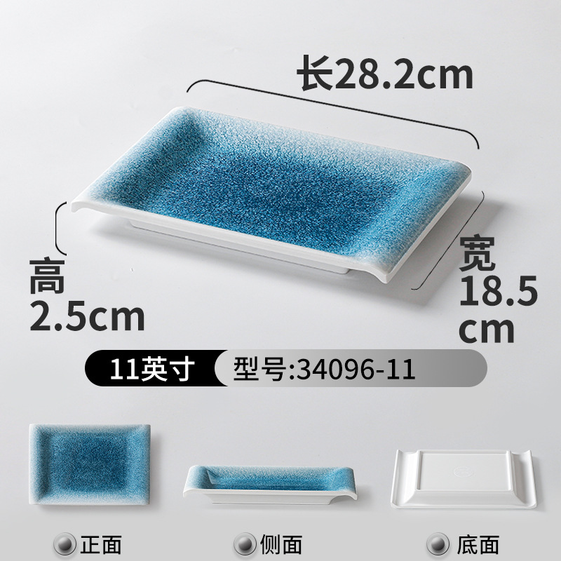 10개입 타이데멜라민 식기 접시 직사각형 볶음 접시 인조 도자기 레스토랑 서빙 접시 상업용 냉채 접시