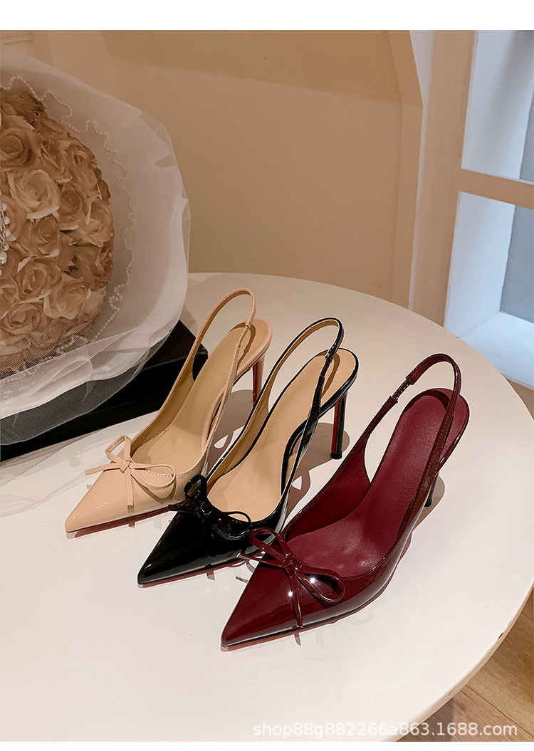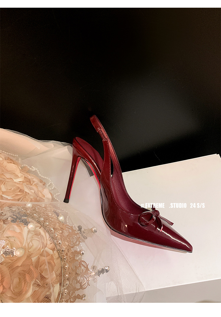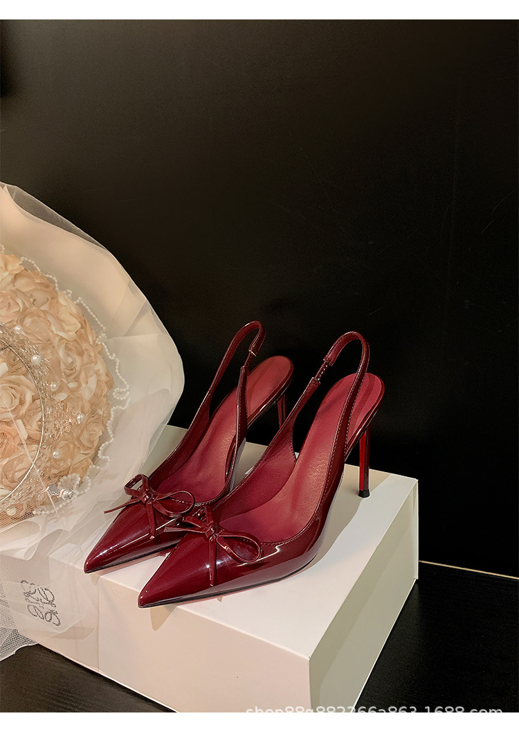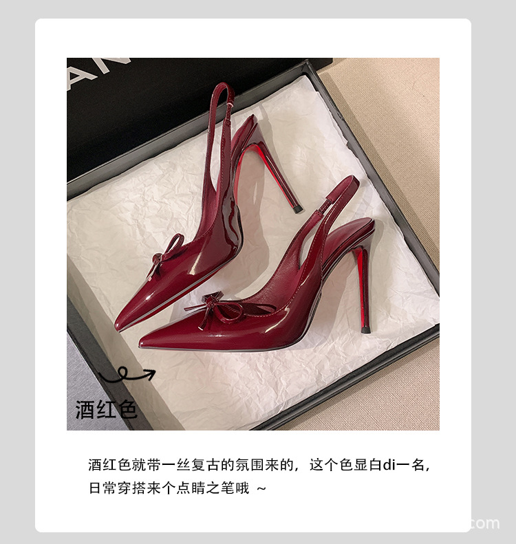 버건디 하이힐 슈즈 여성용 2025 뉴 포인티드 보우 울트라 미세 힐로 입 신발 여성용 섹시한 바오터우 샌들스토어 가기
