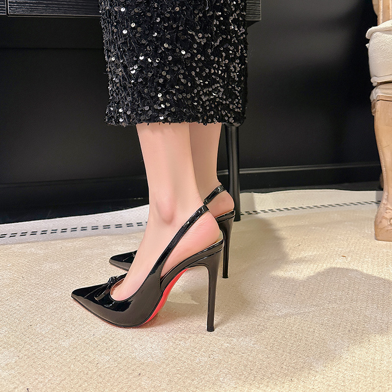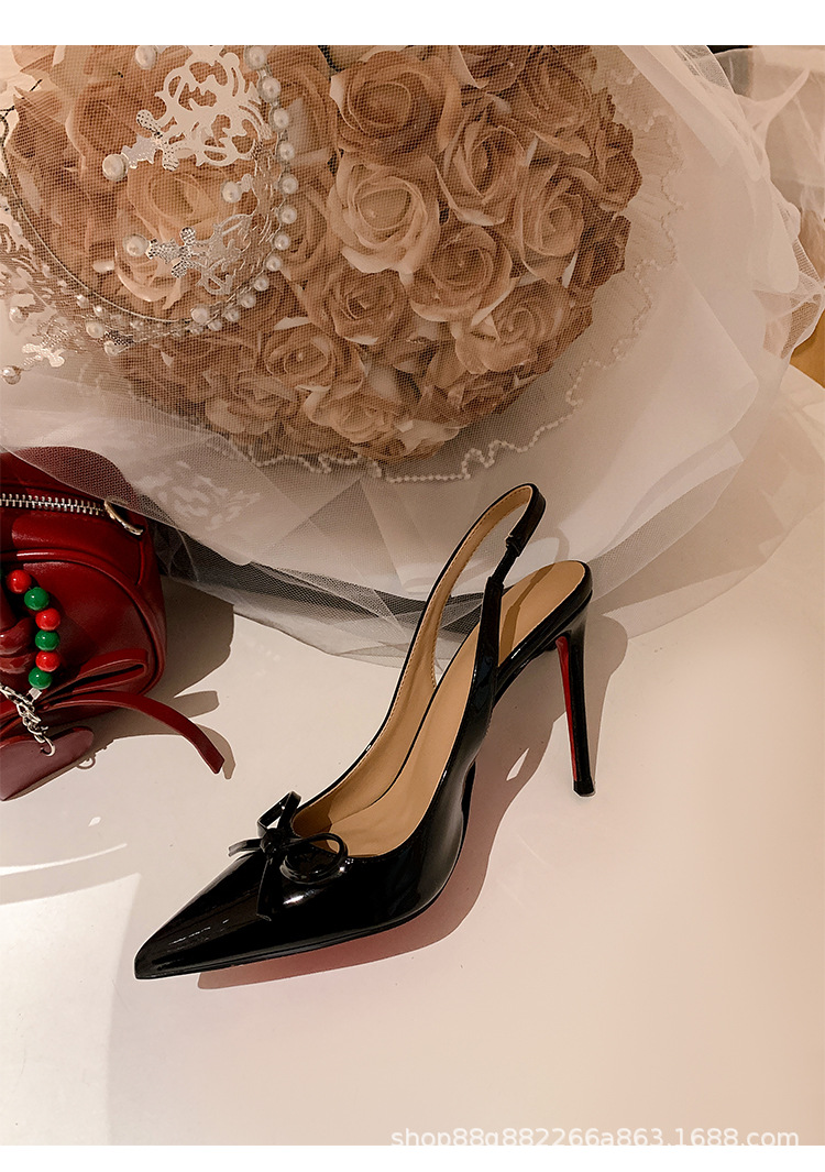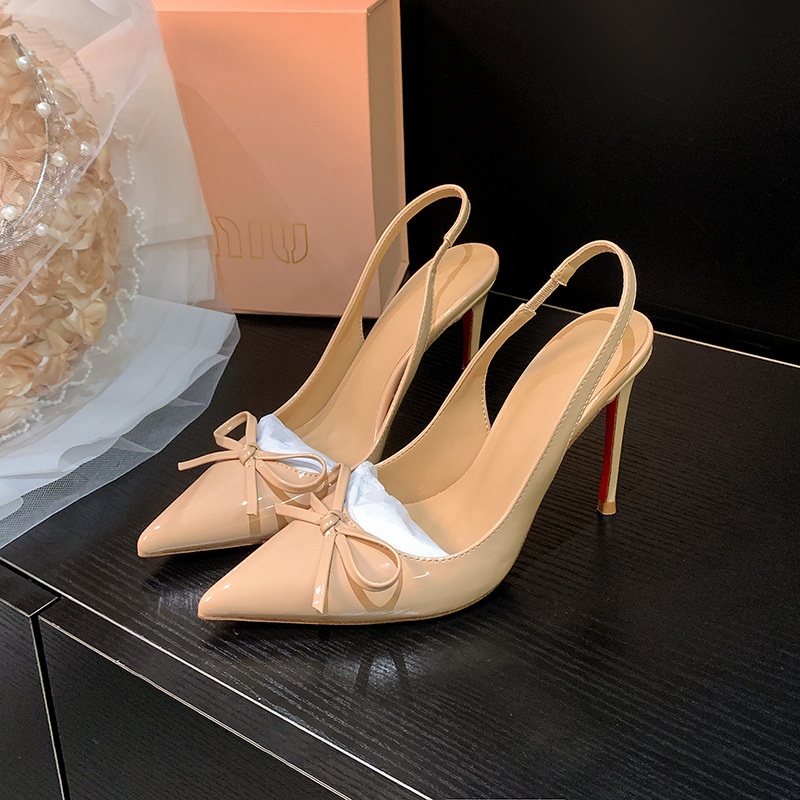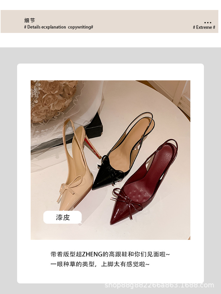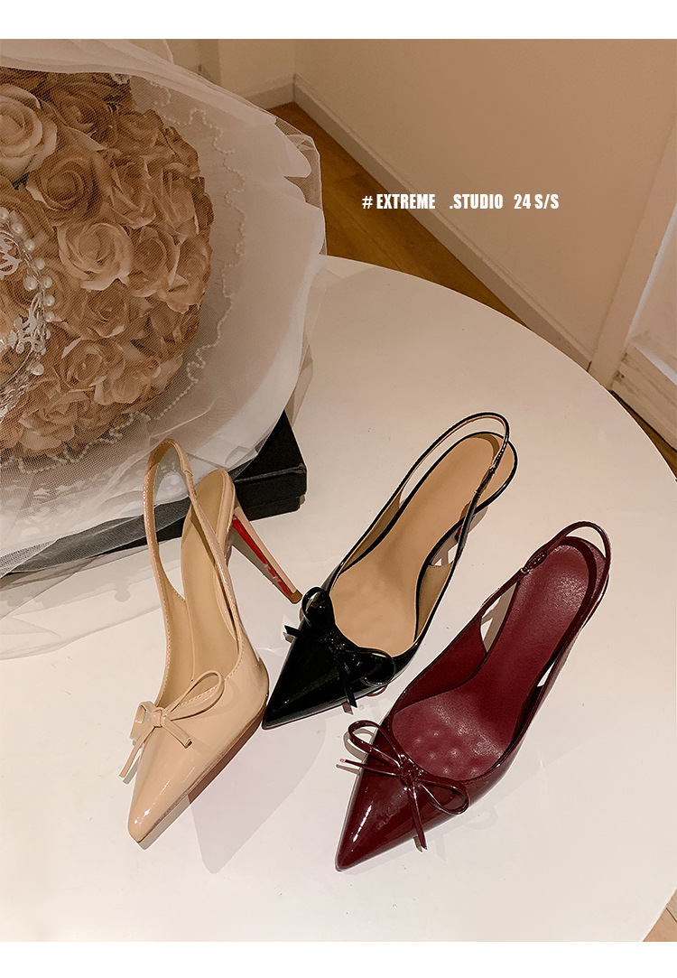 버건디 하이힐 슈즈 여성용 2025 뉴 포인티드 보우 울트라 미세 힐로 입 신발 여성용 섹시한 바오터우 샌들스토어 가기