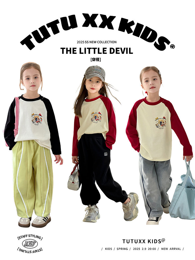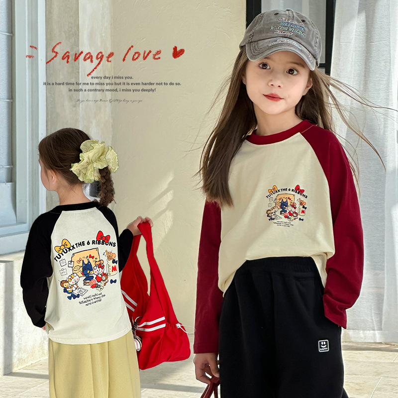 Tutu Elephant Girls 'T 셔츠 2025 봄 새로운 어린이 캐주얼 귀여운 색상 일치 긴 소매 Parin-아동베이스 셔츠