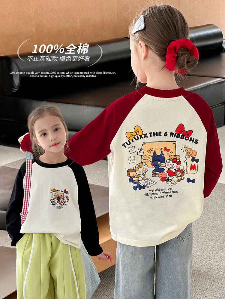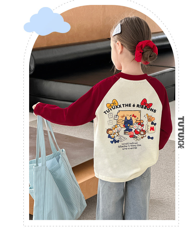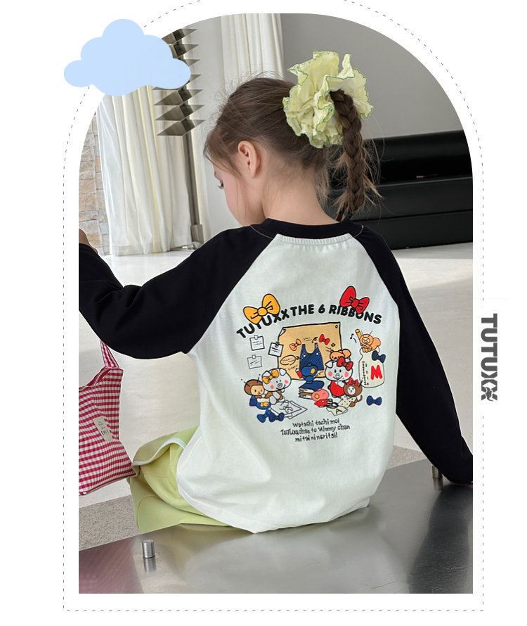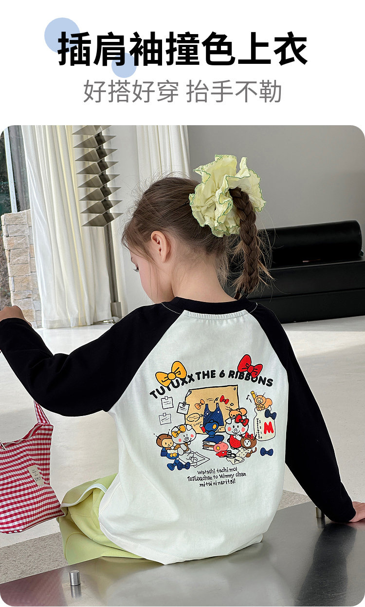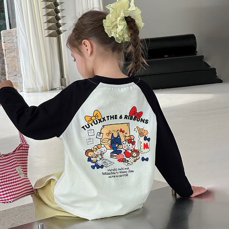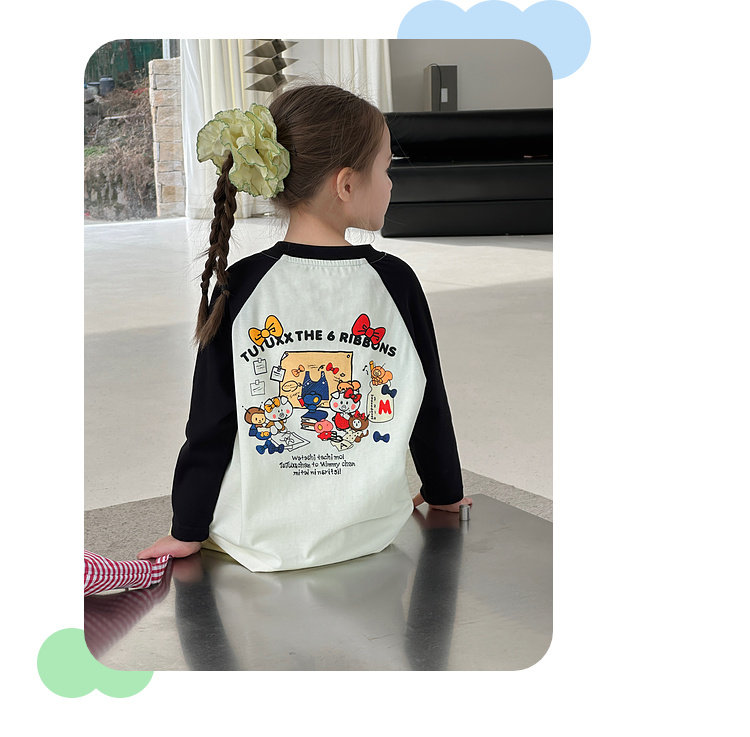 Tutu Elephant Girls 'T 셔츠 2025 봄 새로운 어린이 캐주얼 귀여운 색상 일치 긴 소매 Parin-아동베이스 셔츠스토어 가기