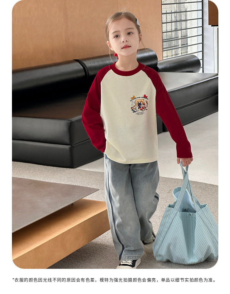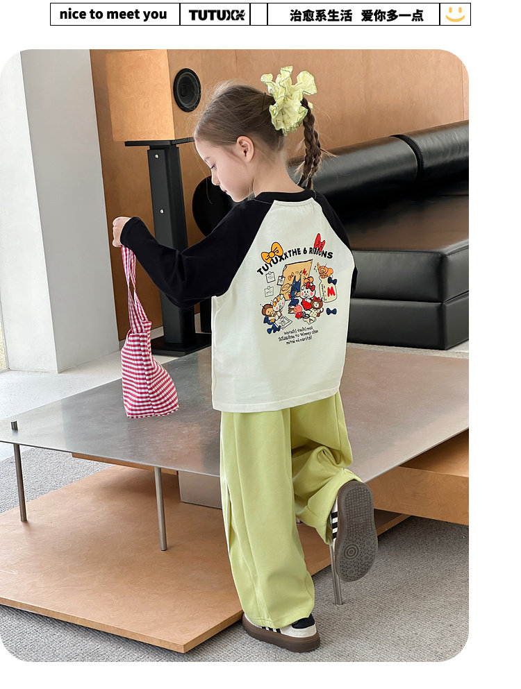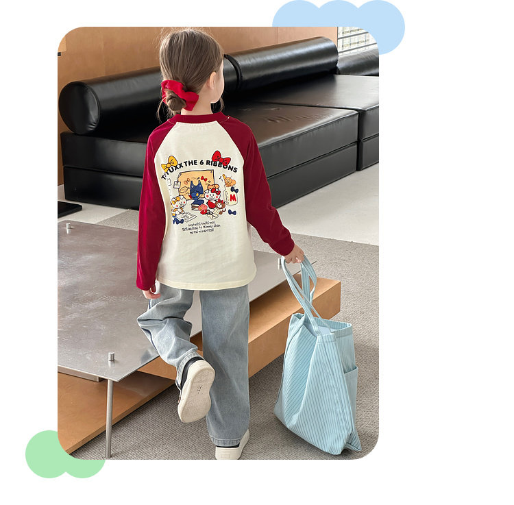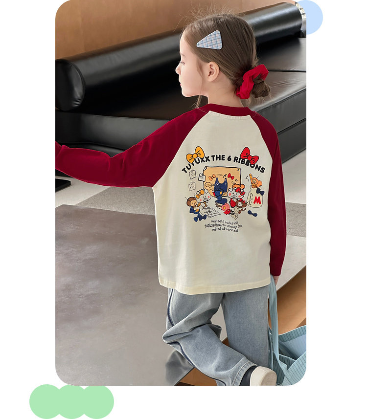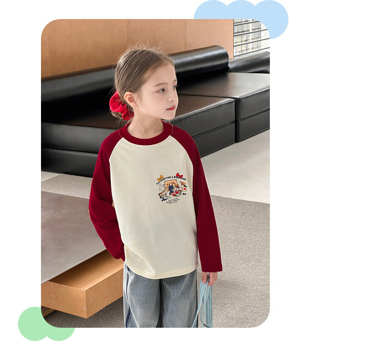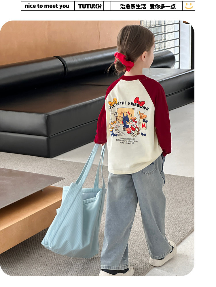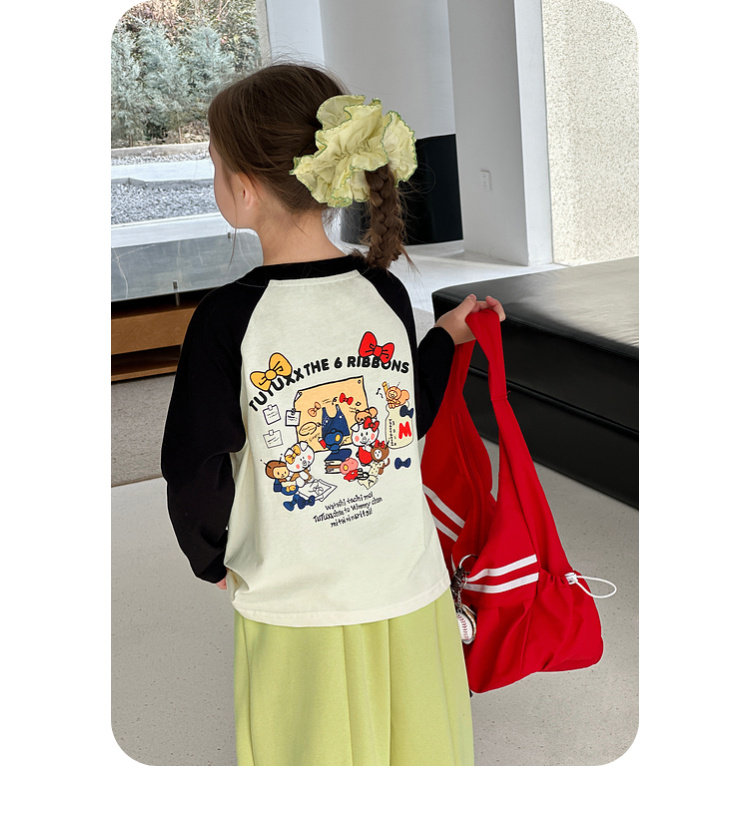 Tutu Elephant Girls 'T 셔츠 2025 봄 새로운 어린이 캐주얼 귀여운 색상 일치 긴 소매 Parin-아동베이스 셔츠스토어 가기