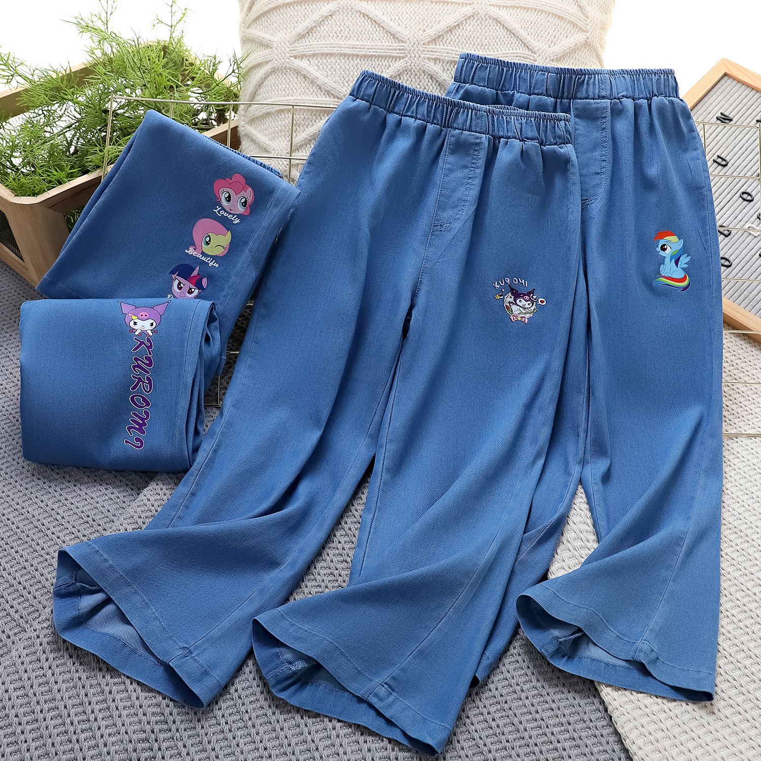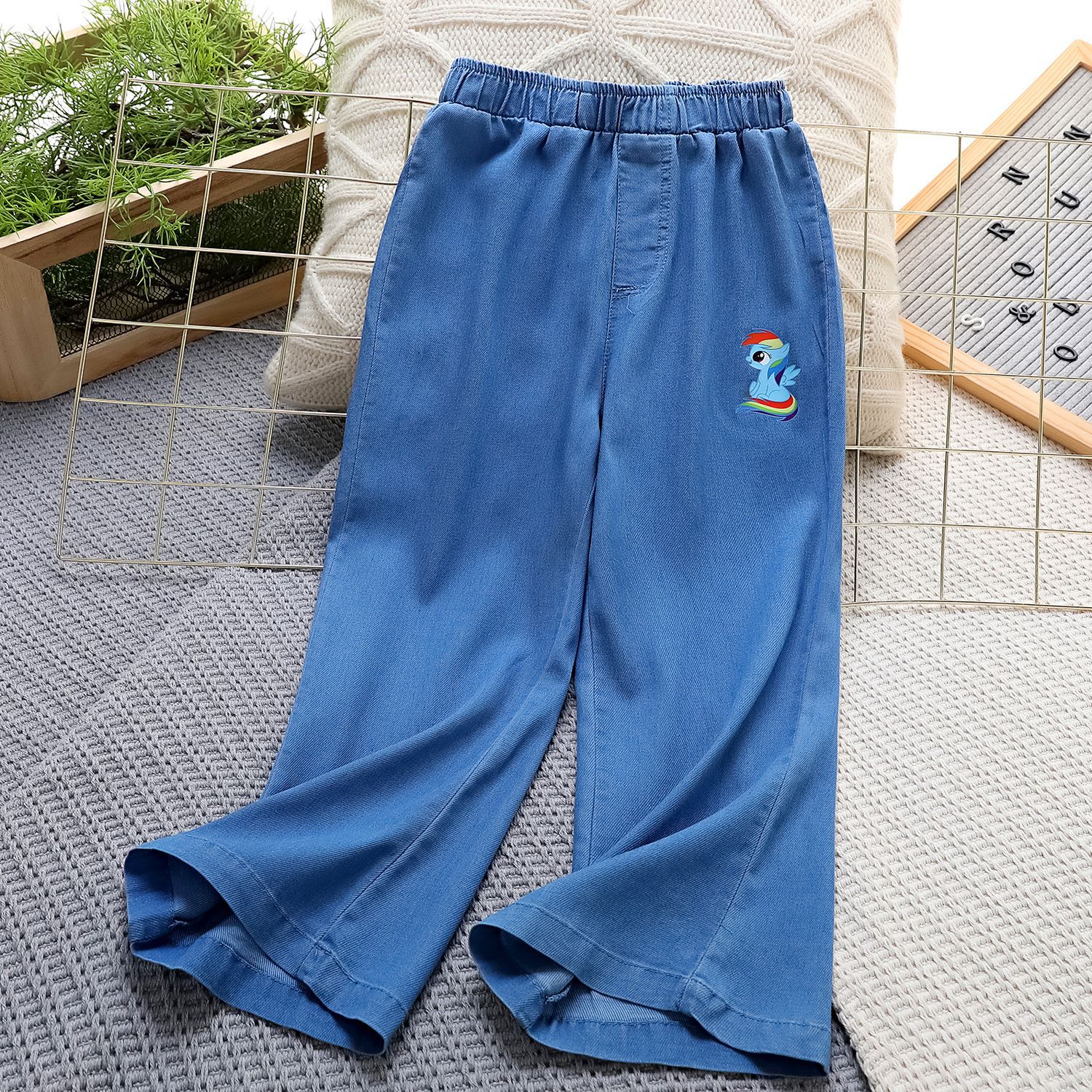 110-150 130-170弹力牛仔喇叭裤裤夏款水洗骑兵斜 不起球变形 柔软