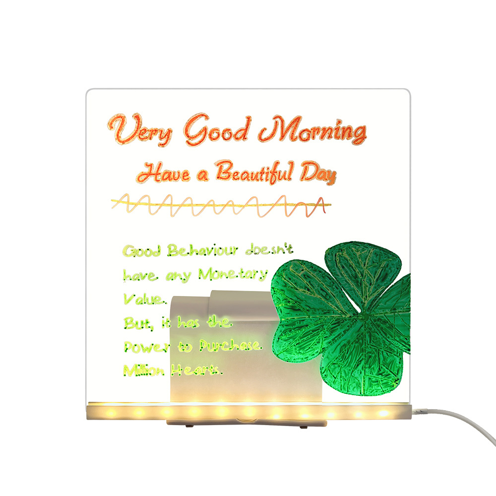 • 这款多功能夜灯不需要充电,直接插电或者USB就能用,USB 支持移动电源和电脑,也可以画上美丽的画,或者写上温馨的字,这样氛围更好了,它集家居装饰、可擦写画板与信息板于一体。它能激发孩子的创造力,作为装饰品使用,并且是送礼佳品。拥有7种颜色,可以自由涂鸦或从书籍/平板电脑上临摹。亮点包括:可重复使用的表面、安全的低电压LED灯、体积小巧轻便,适合家居或旅行使用,是完美的礼物!