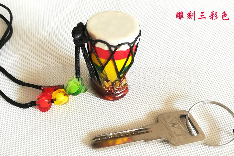 高度5厘米左右,鼓面直径3厘米左右,小巧可爱,有挂脖项链款和钥匙扣款~~