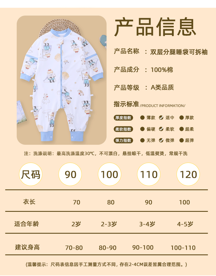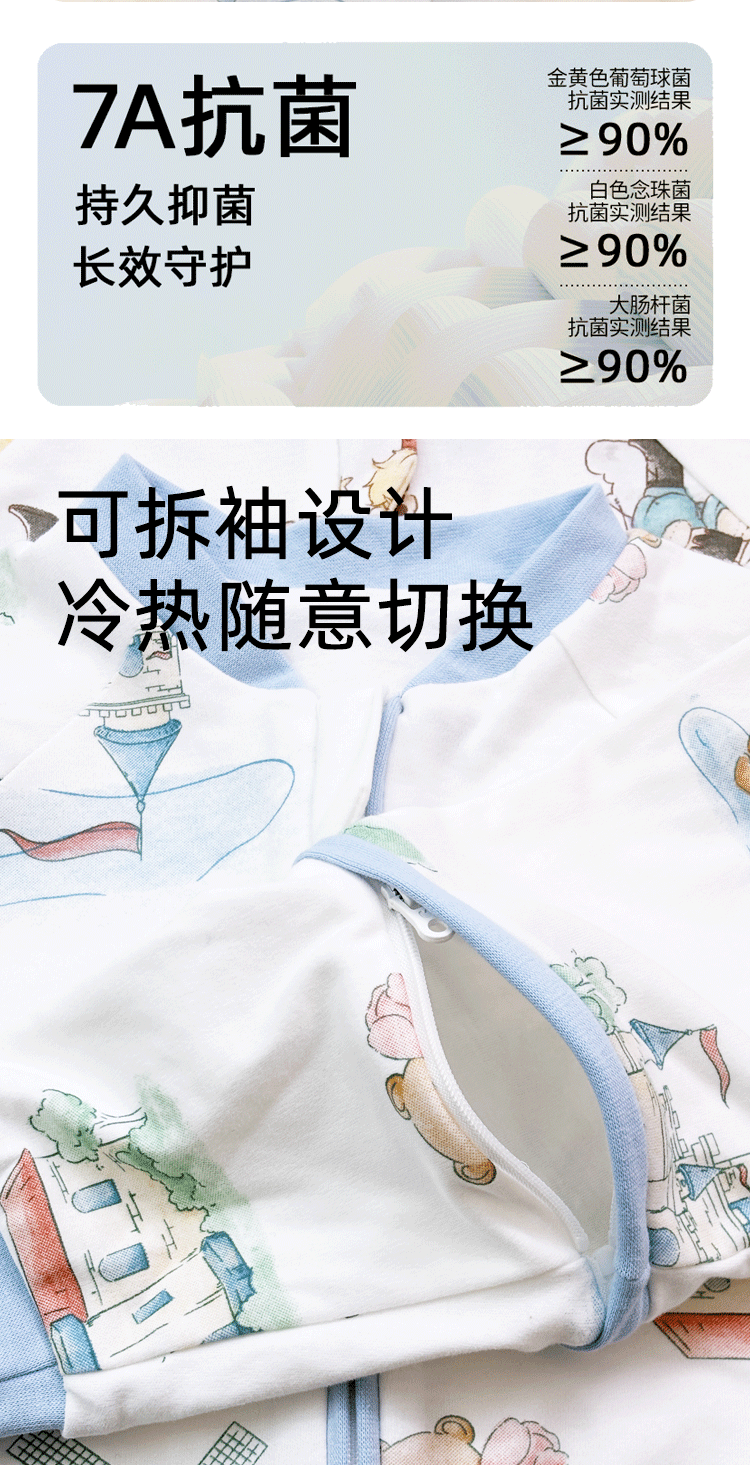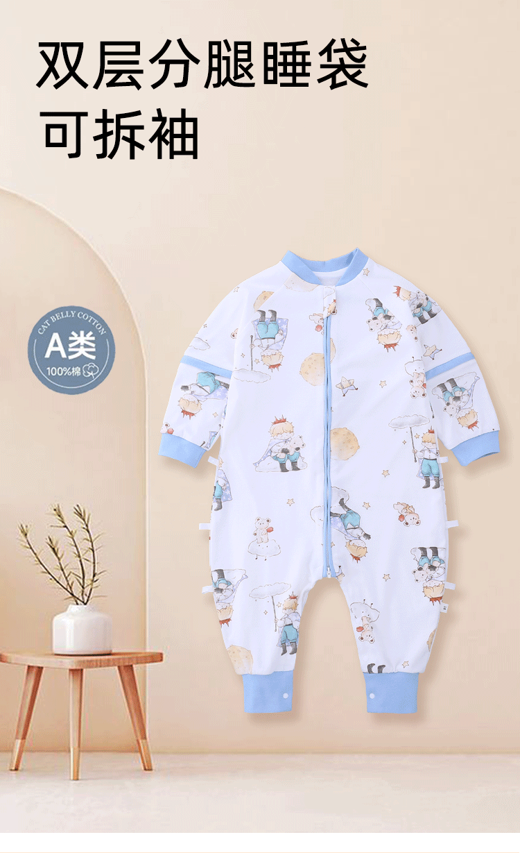 어린이용 이중층 순면 아기 다리 분리형 수면조끼 A급 항균 방지 담요 아기 홈웨어 만화 항균 통기성스토어 가기