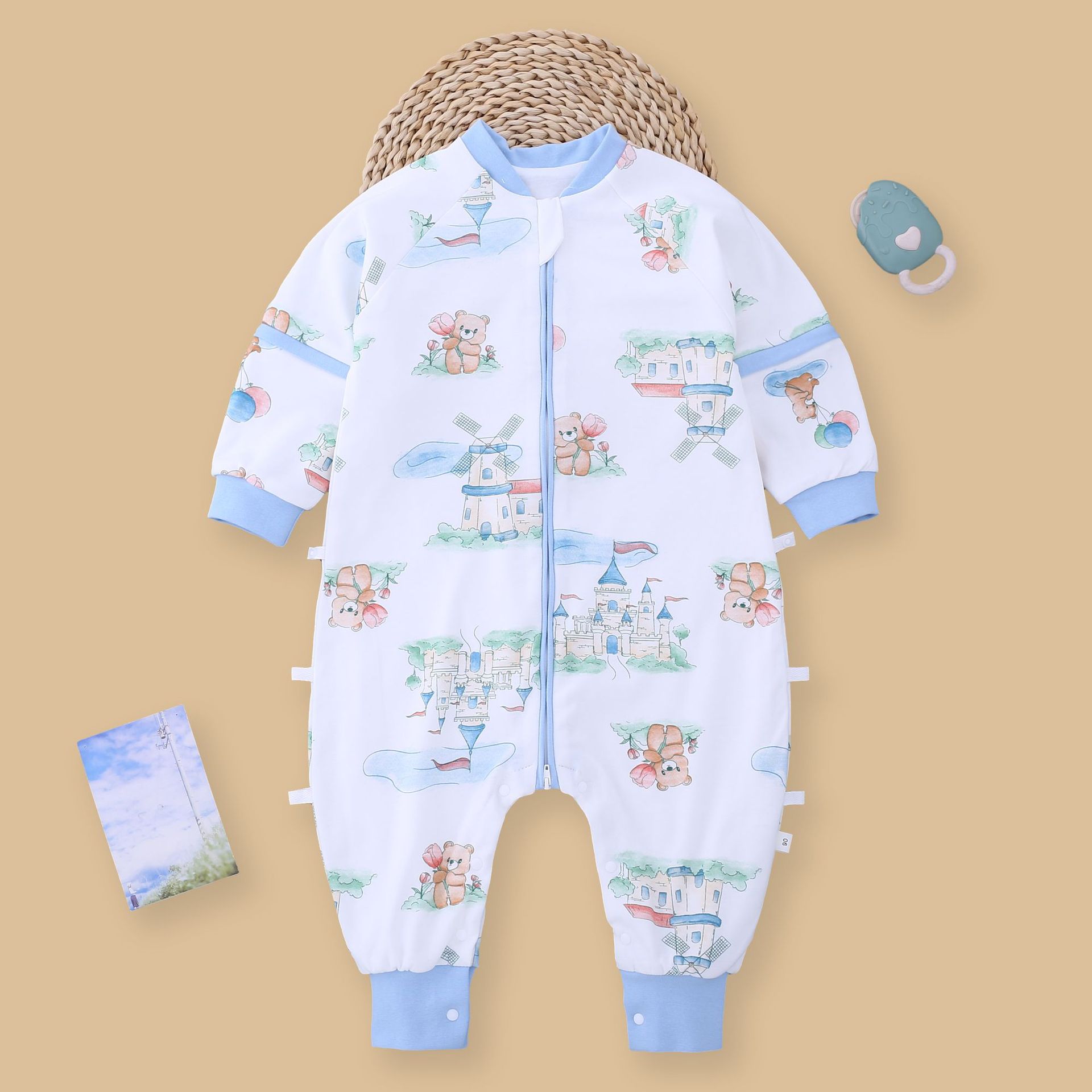 어린이용 이중층 순면 아기 다리 분리형 수면조끼 A급 항균 방지 담요 아기 홈웨어 만화 항균 통기성