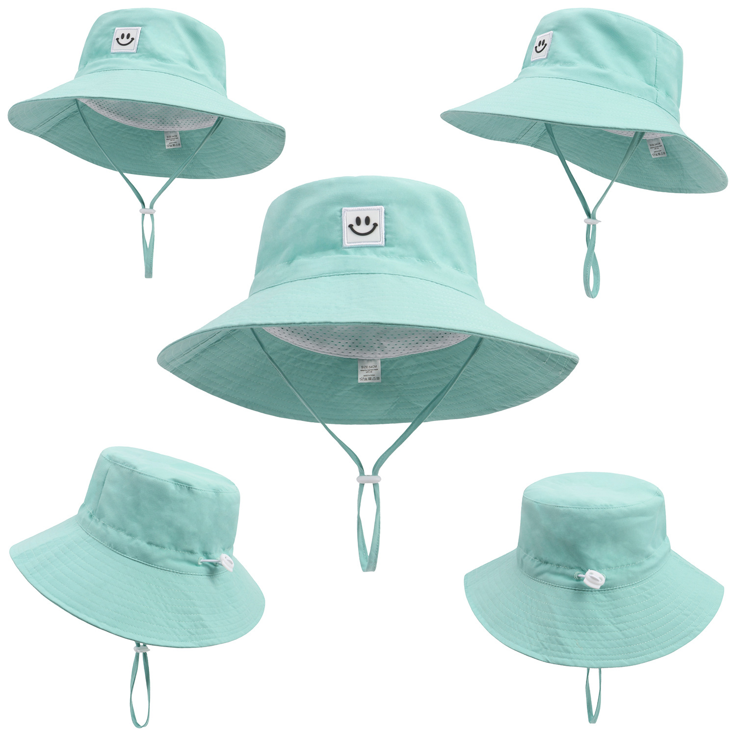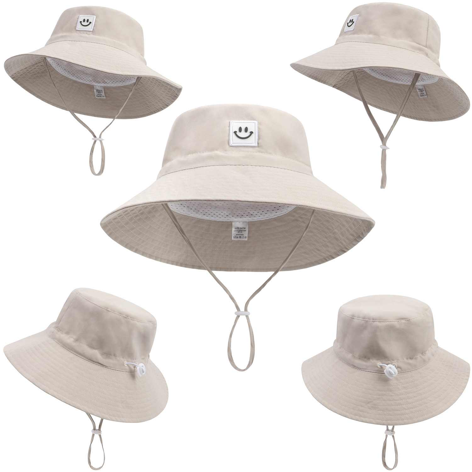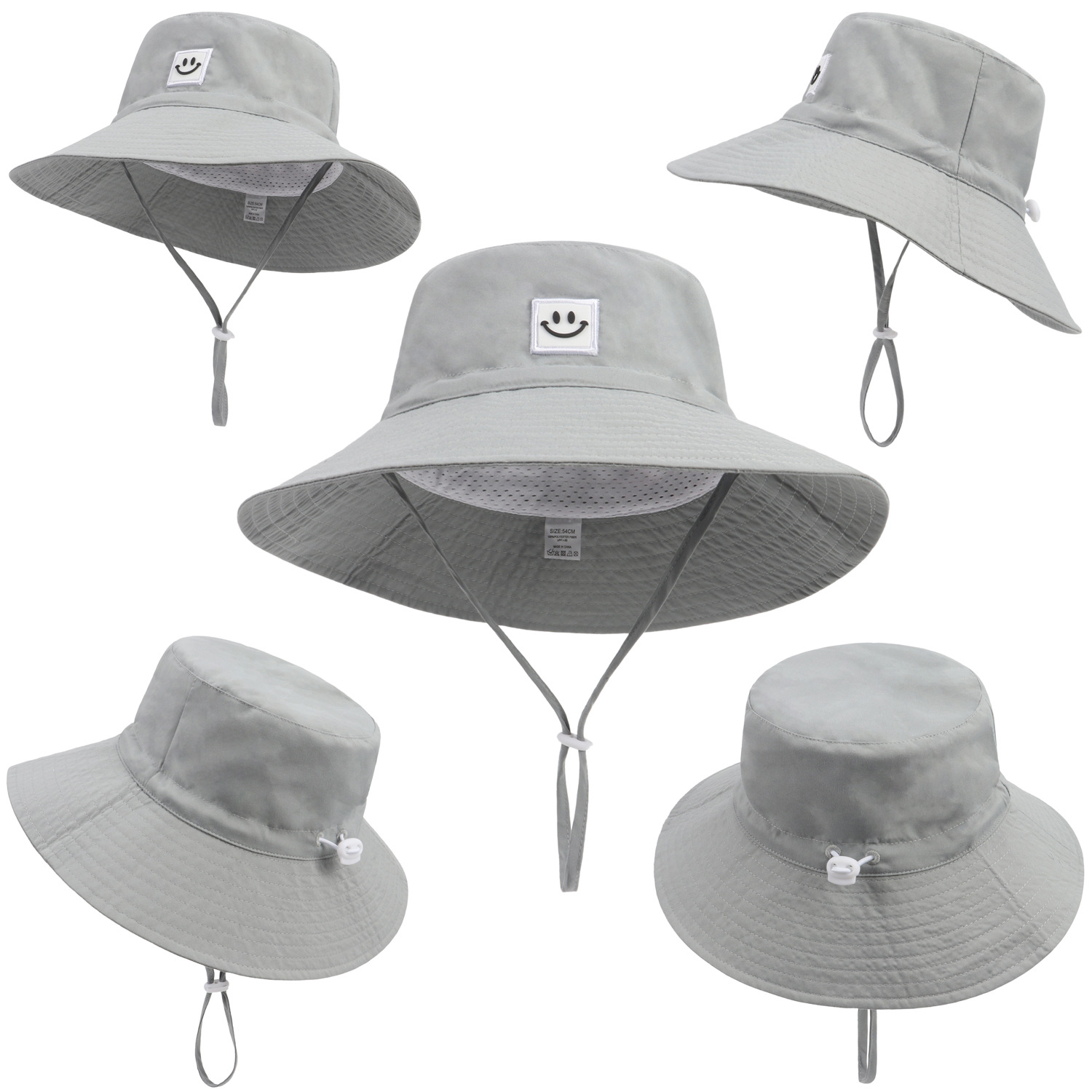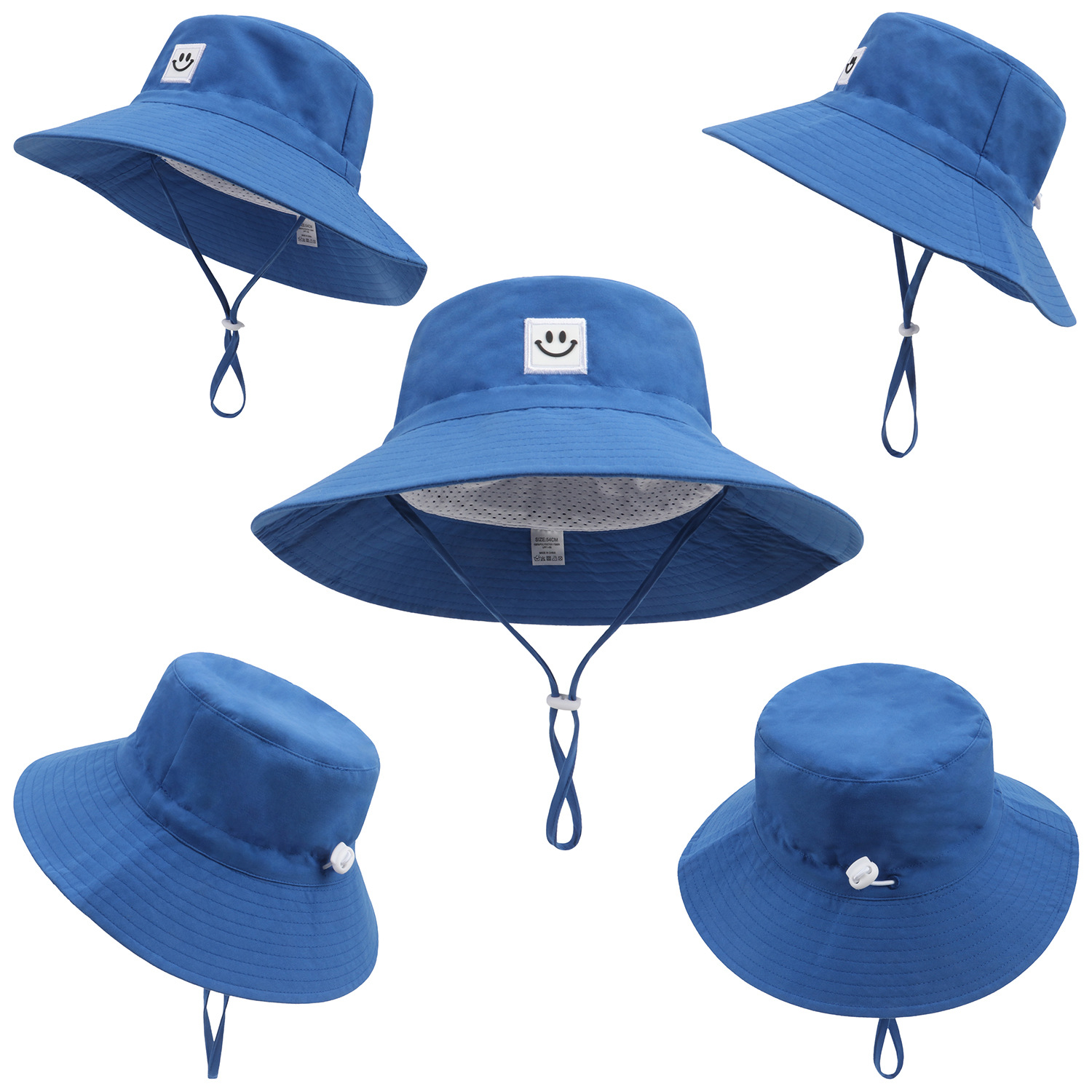 아마존 국경 아기 차양 태양 모자 빠른 건조 통기성 upf50 실리콘 스마일리 라벨 어린이 선 스크린 모자