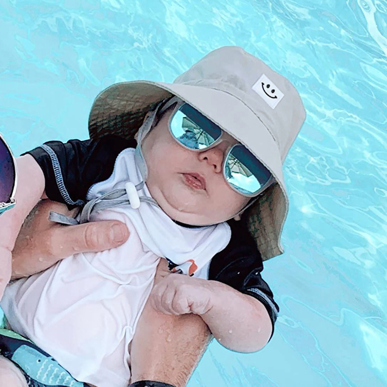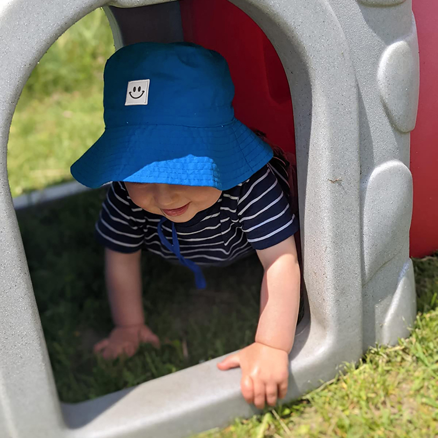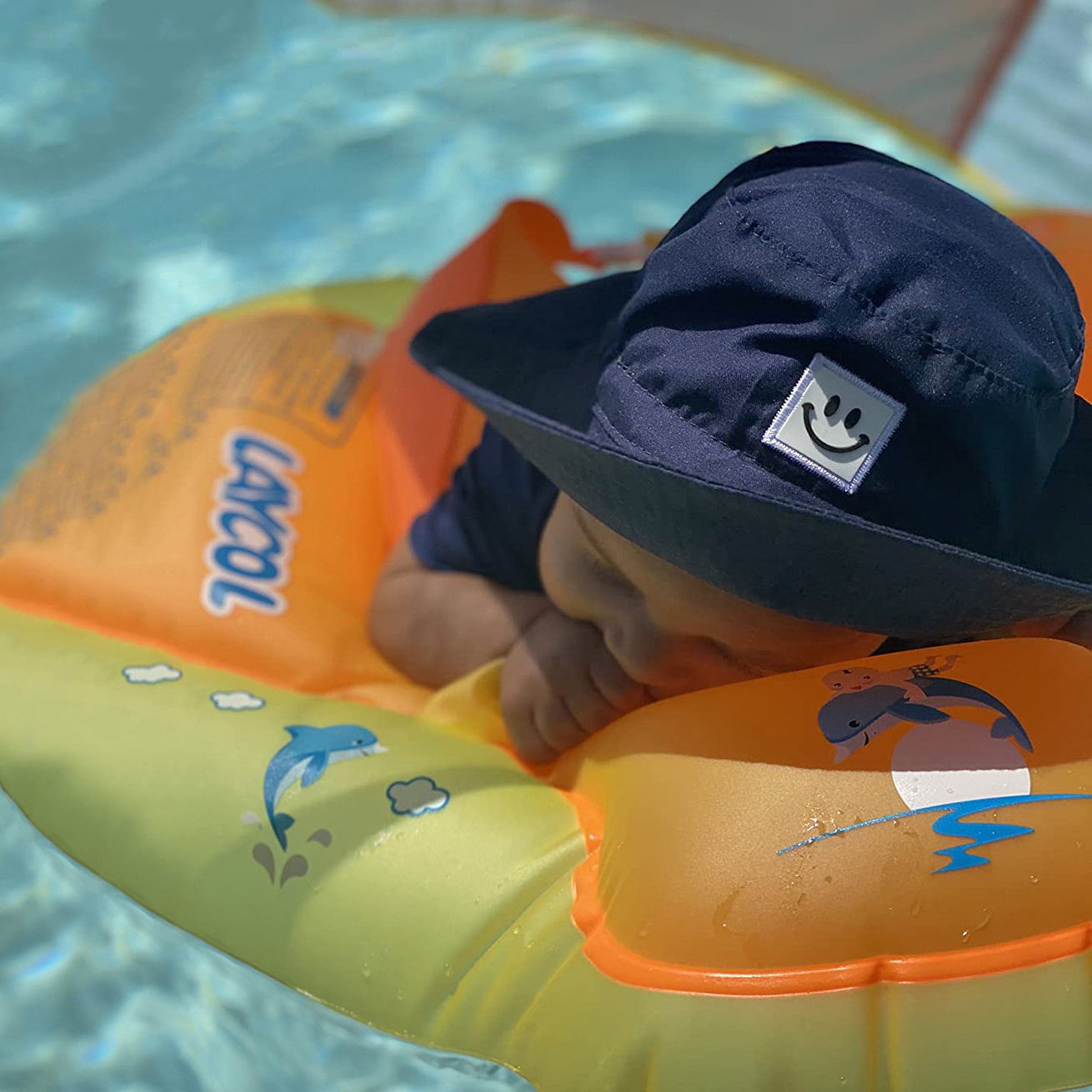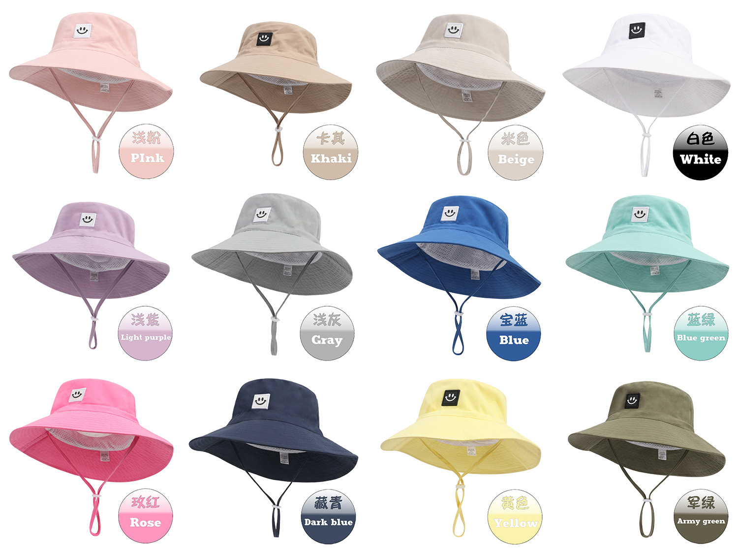 아마존 국경 아기 차양 태양 모자 빠른 건조 통기성 upf50 실리콘 스마일리 라벨 어린이 선 스크린 모자