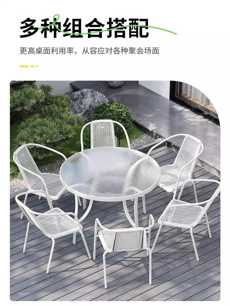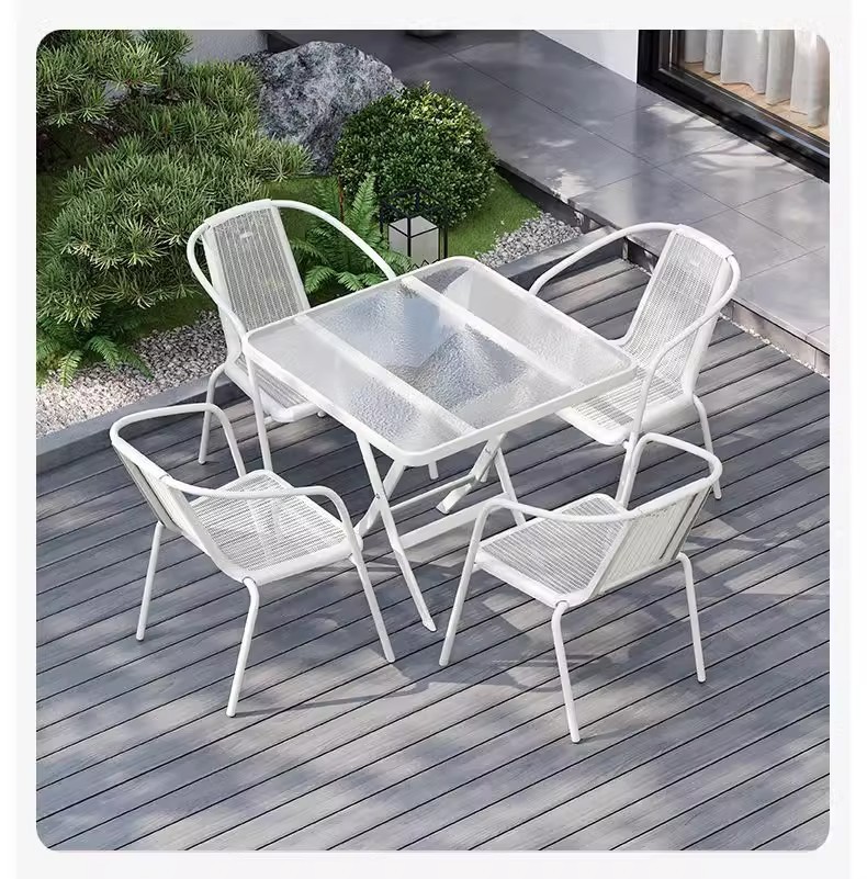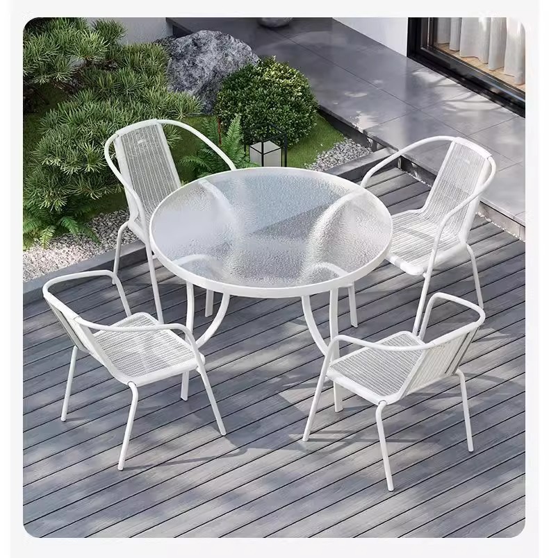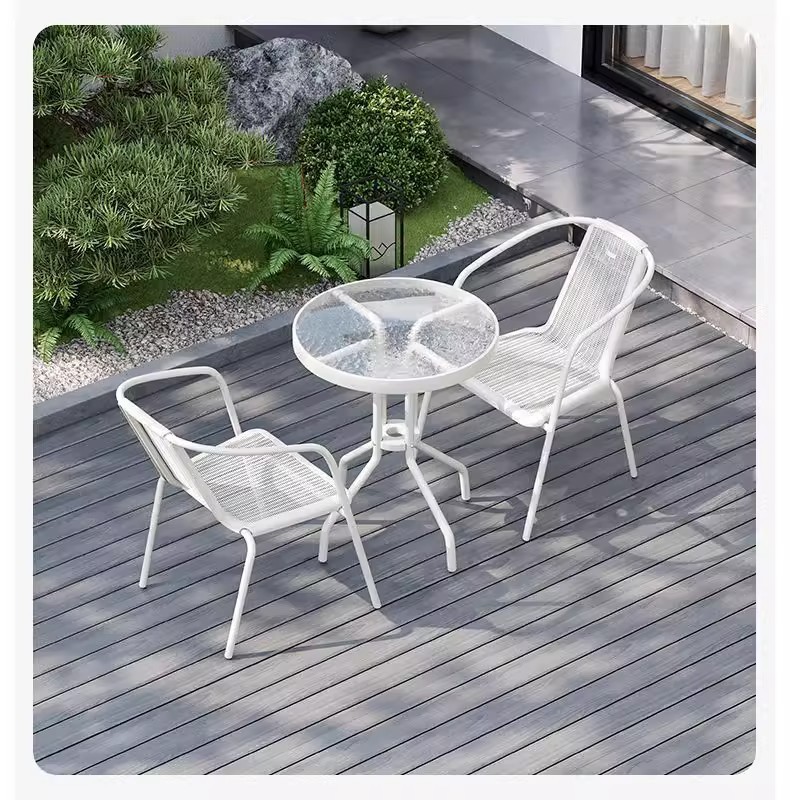 철제 야외 테이블과 의자 세트, 야외 등나무 의자, 발코니, 작은 정원, 안뜰, 커피 테이블, 3종 세트, 현대적이고 심플한 디자인