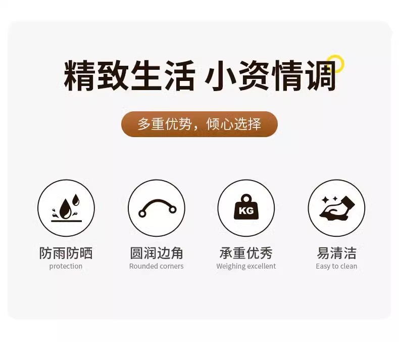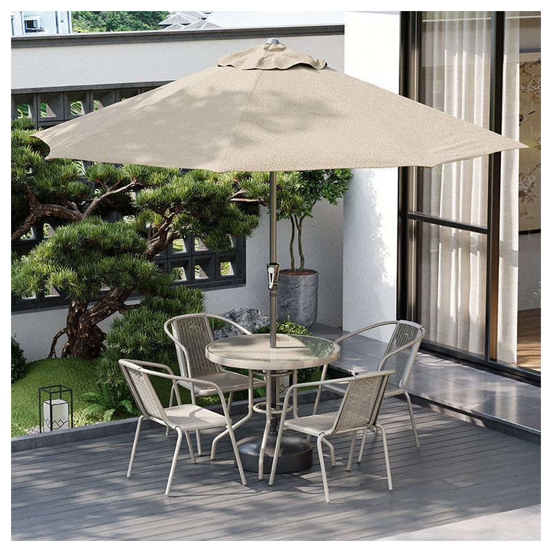 • 샴페인 컬러 (의자 4개 + 80CM 조립 원형 테이블) + 카키색 중기우산 + 베이스