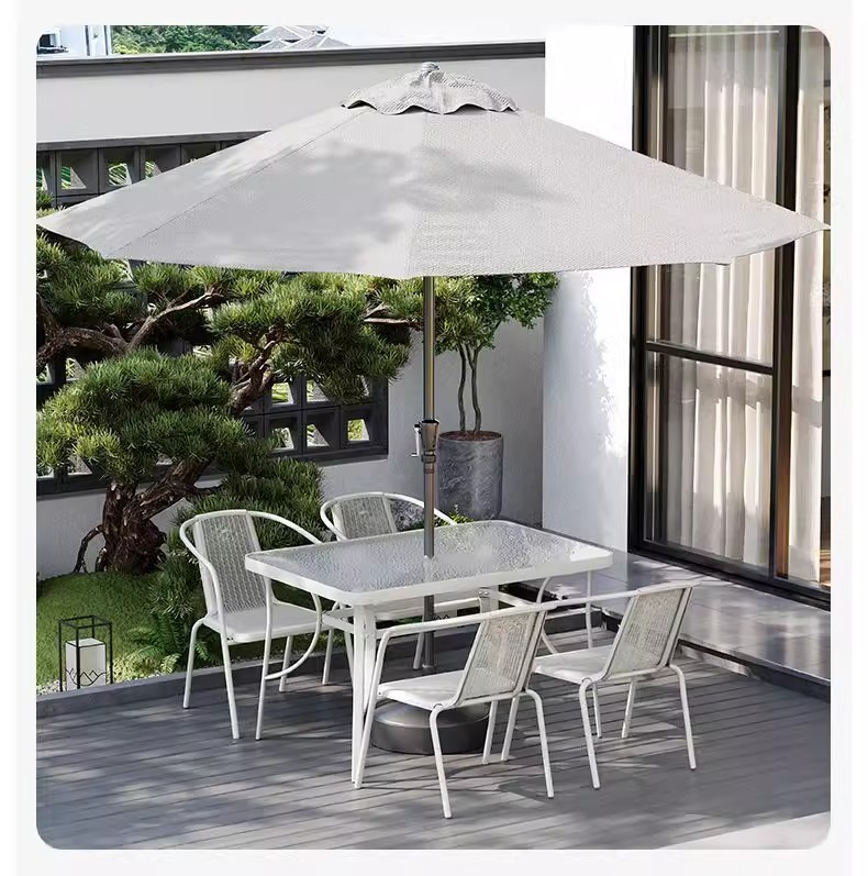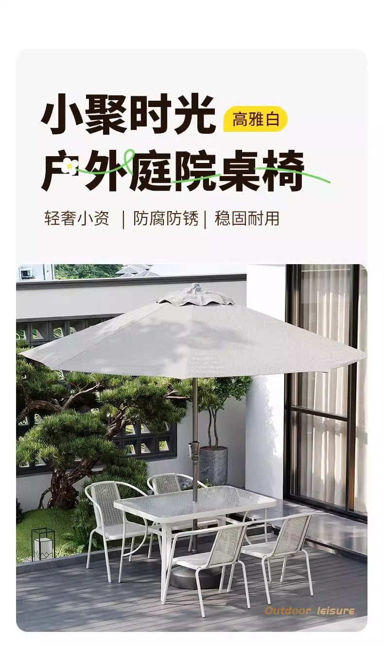 • 화이트 (의자 4개 + 80CM 물무늬 조립 사각 테이블) + 황백색 중기우산 + 베이스