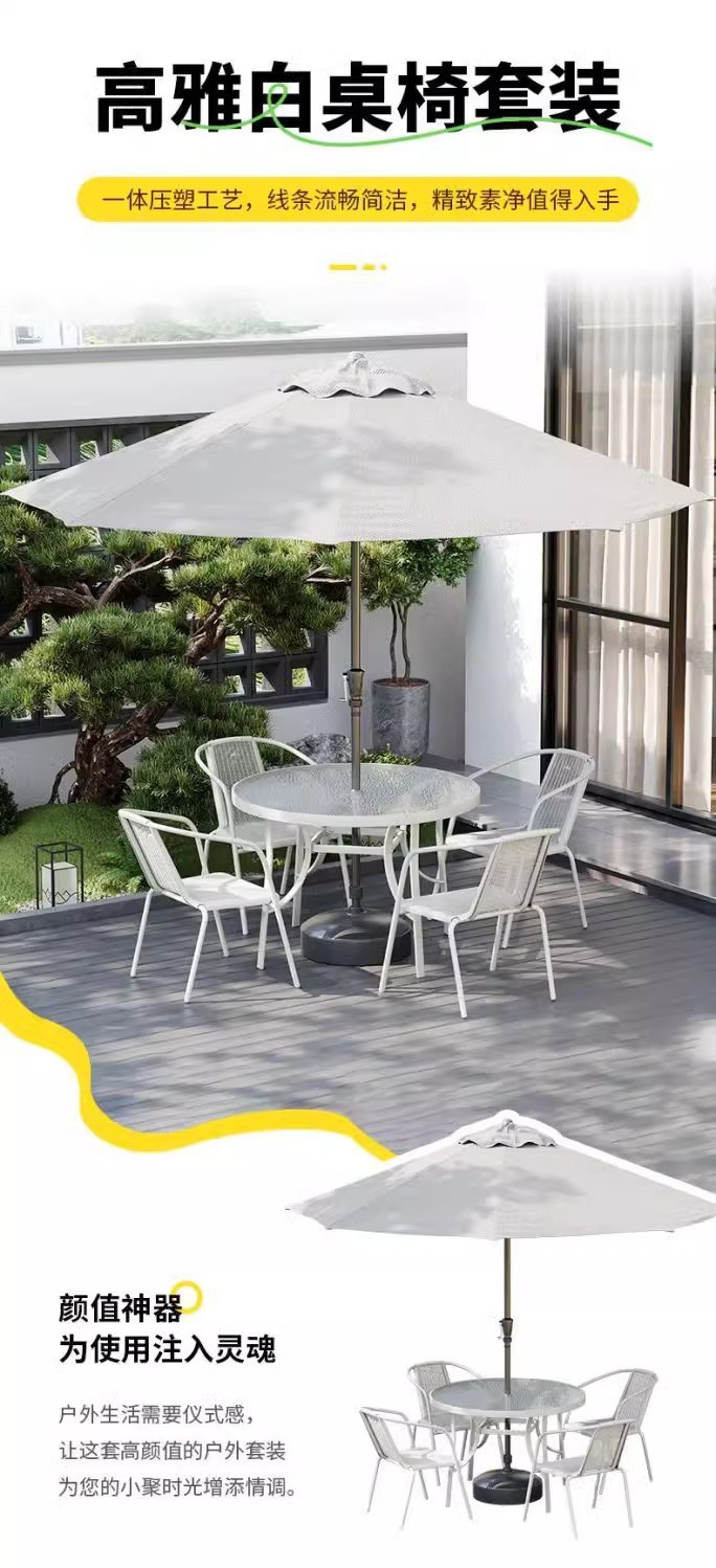 • 화이트 (의자 4개 + 120CM 물무늬 조립장 테이블) + 황백색 중기우산 + 베이스