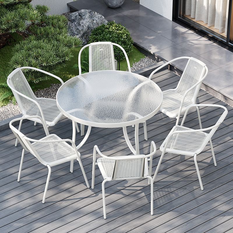 • 흰색 모조 등나무 의자 시리즈 (의자 6개 + 물무늬 조립 원형 테이블 105CM)