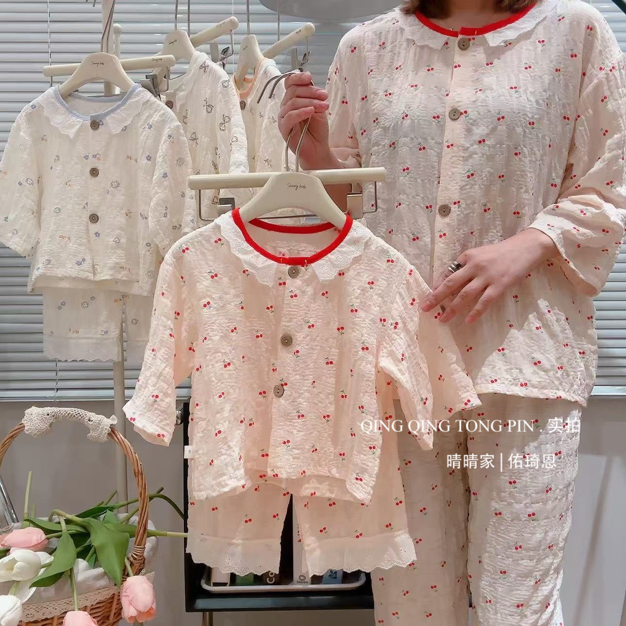 7A 항균 어린이 가정 의류 세트 소녀의 2025 년 새 여름 얇은 잠옷 세븐 슬리브 에어컨 투피스 세트스토어 가기