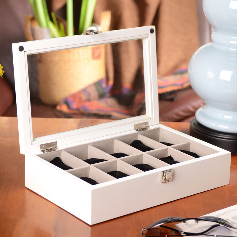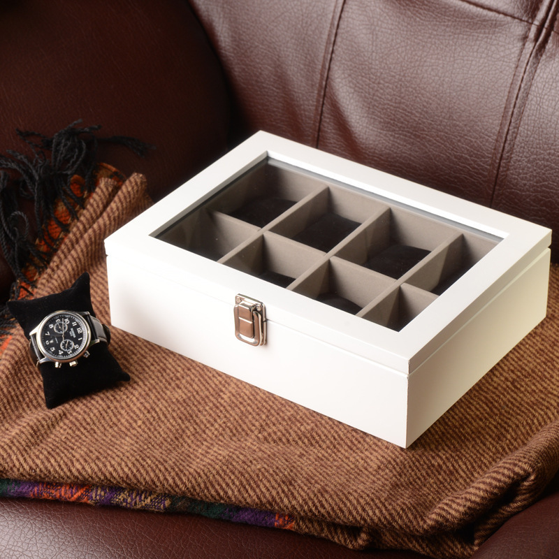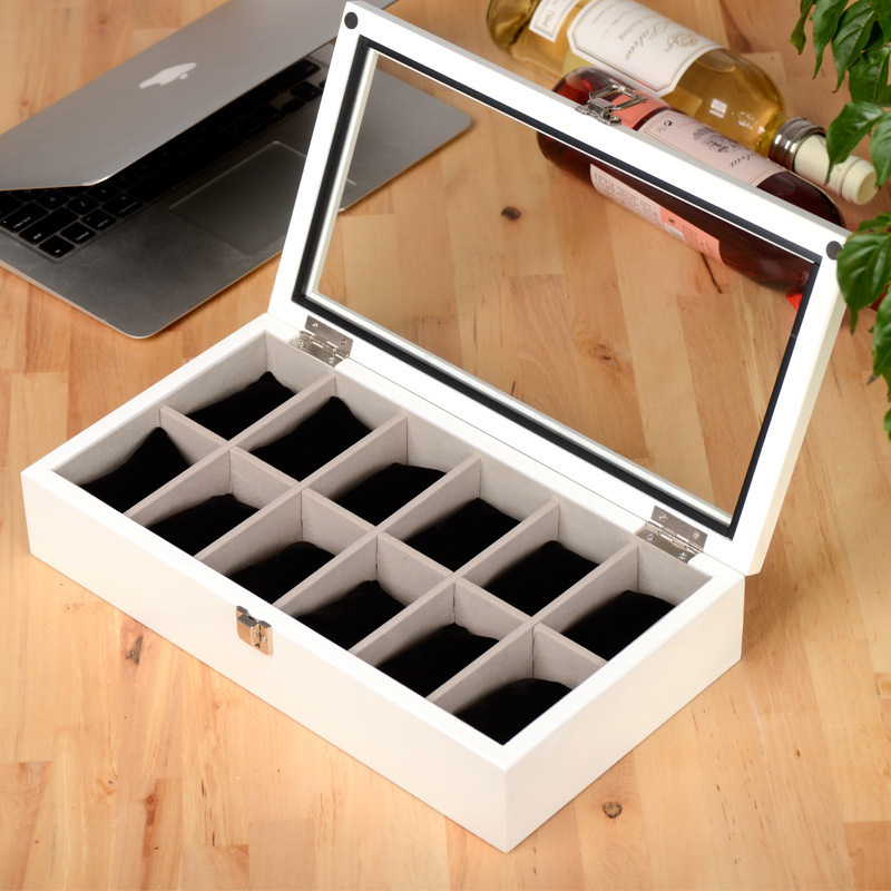 • 10개의 수납공간이 있는 흰색 시계 상자
