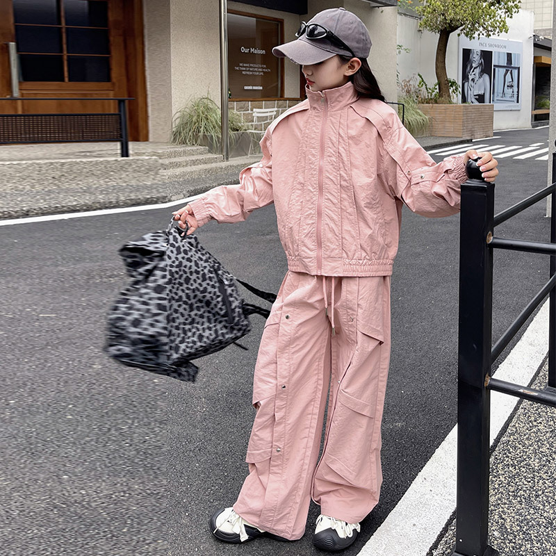 소녀 세트 봄과 가을 2025 새로운 서양식 어린이 소녀 중 큰 어린이 레저 스포츠 쿠션 바지 투피스 세트