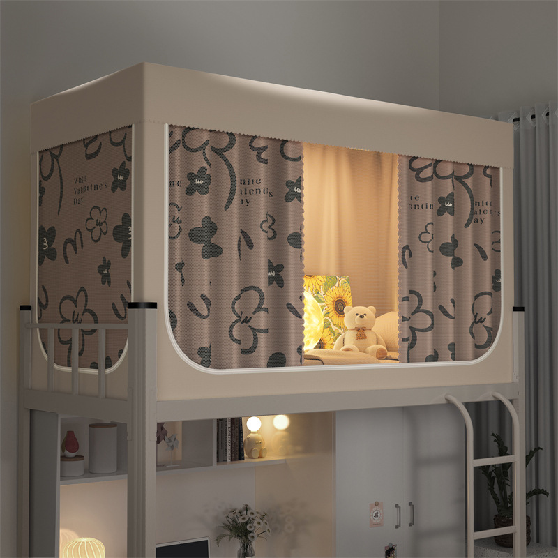 음영 침대 커튼이있는 학생 기숙사 모기장 통합 설치-무료 공장 대학 기숙사 싱글 침대 이층스토어 가기
