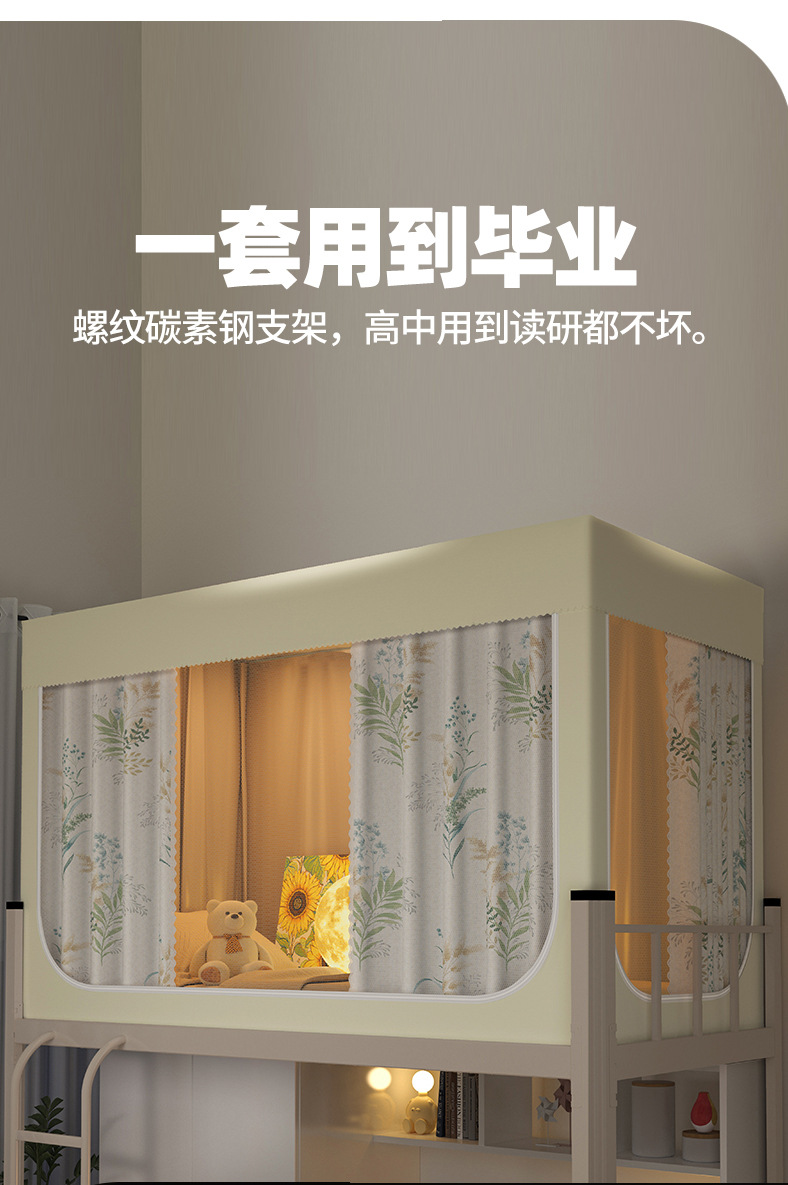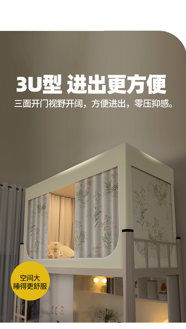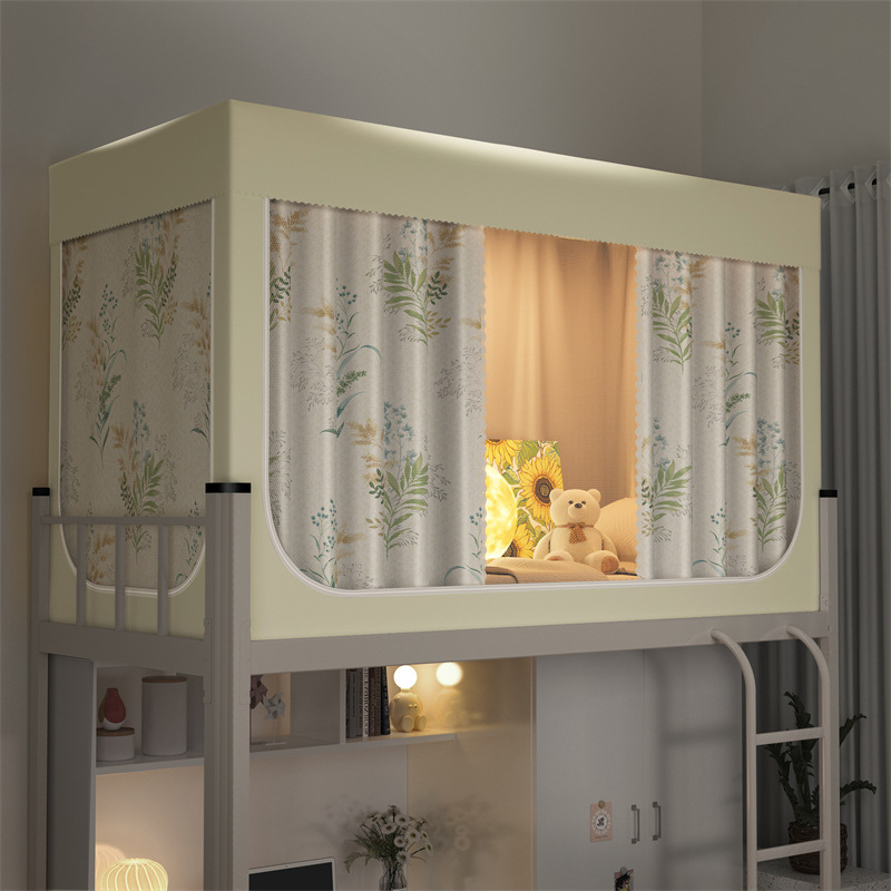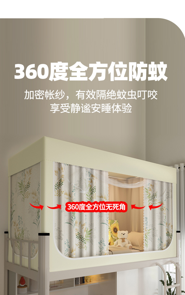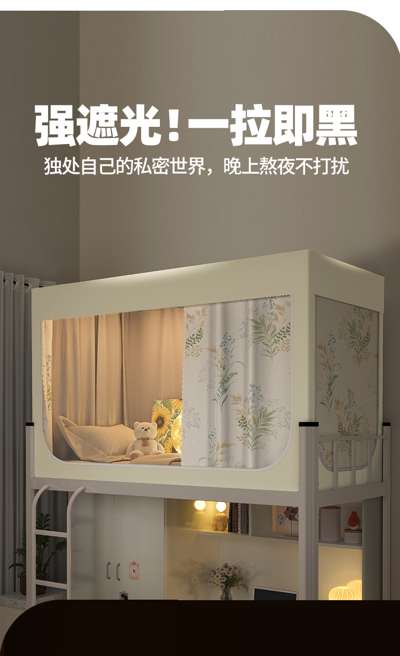 南通家纺厂家批发新款学生宿舍遮光床帘蚊帐免安装工厂大学校寝室单人床上下铺布帘子升级款一体式可折叠床幔