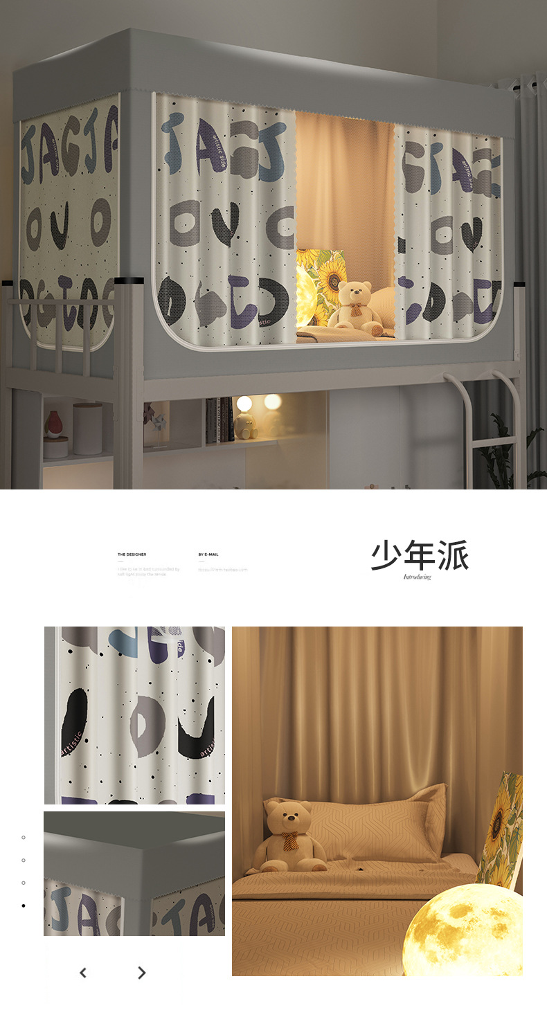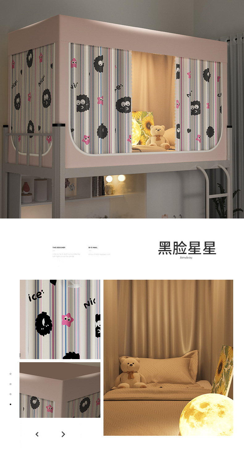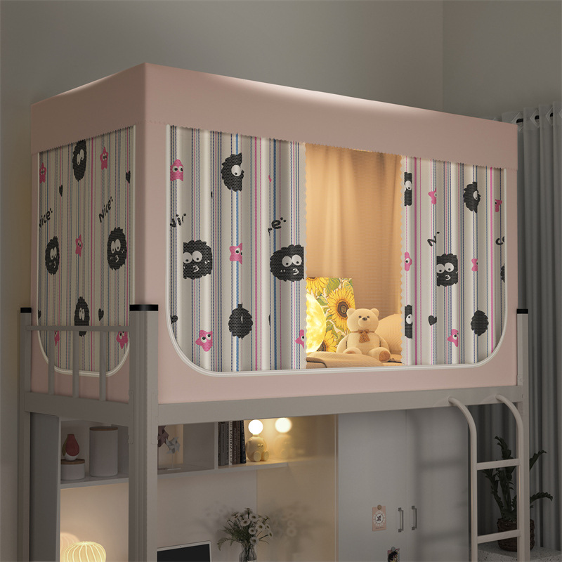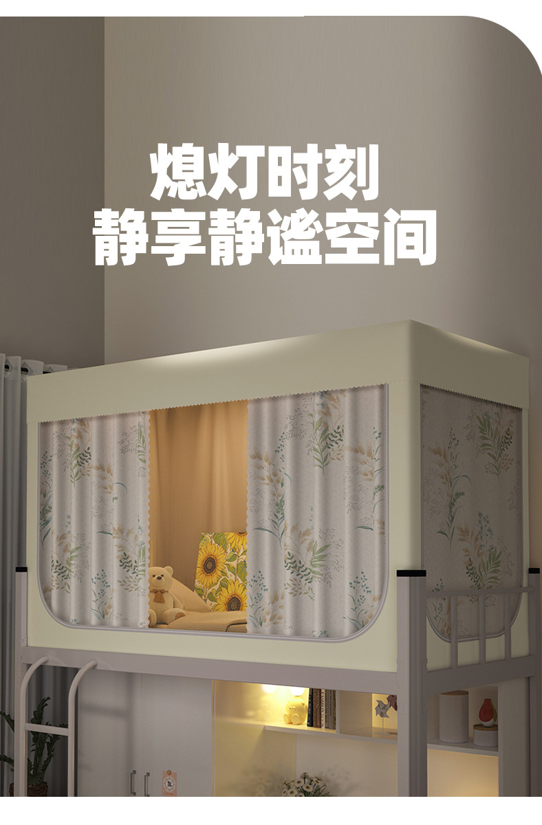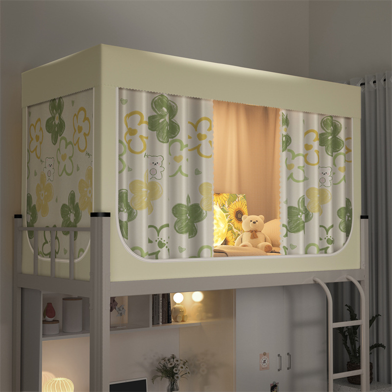 南通家纺厂家批发新款学生宿舍遮光床帘蚊帐免安装工厂大学校寝室单人床上下铺布帘子升级款一体式可折叠床幔