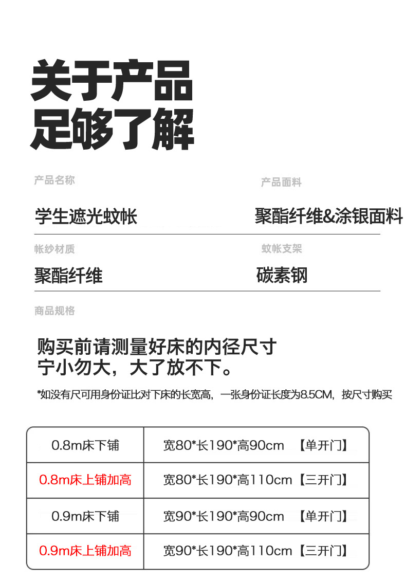 • 0.8m 상단 침대 높이 조절 가능 지지대 + 침대 커튼 세트