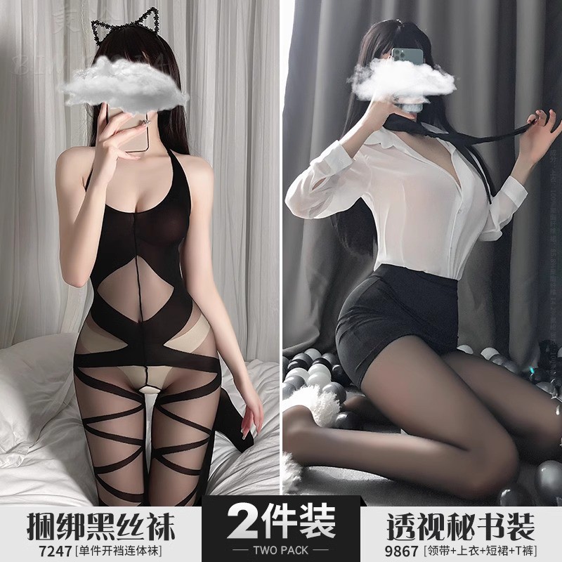 性感连体丝袜全身黑丝激情内衣诱惑情趣开裆免脱套装情调大码衣服