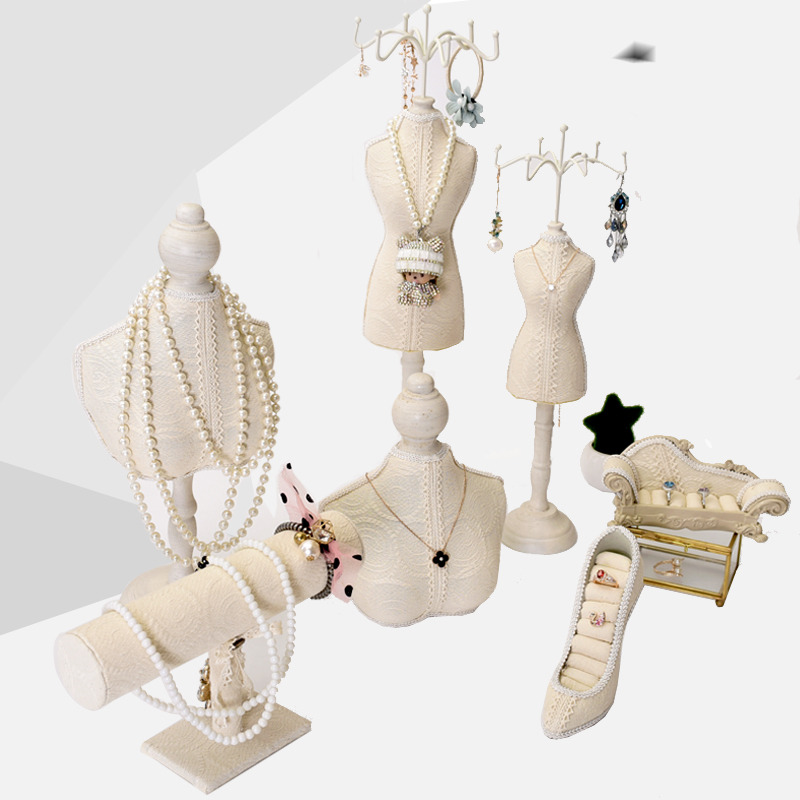 빈티지 레이스 쥬얼리 랙 모델 목걸이 랙 팔찌 보관 창 소품 하프 바디 모델 유럽 스타일 팔찌 랙스토어 가기