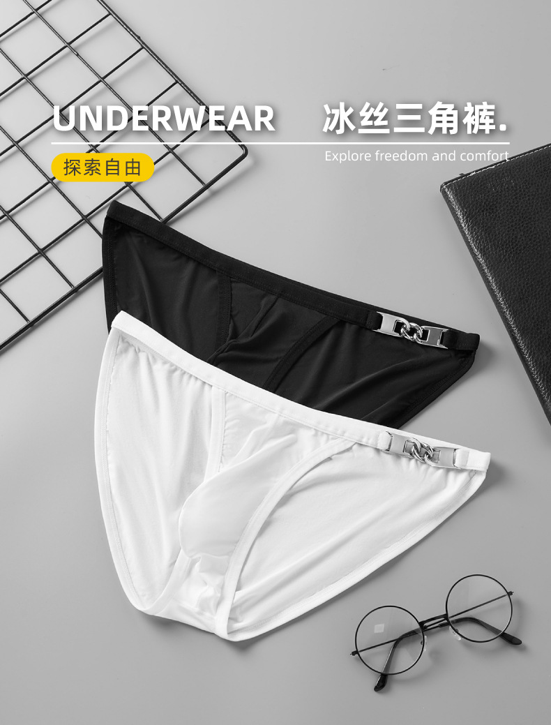 GTOPX MAN 남성 금속 장식 얇은 U Convex 낮은 허리 통기성 땀 흡수 섹시한 브리프 유럽과 미국 속옷