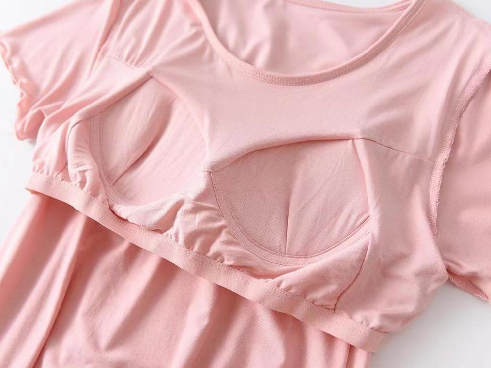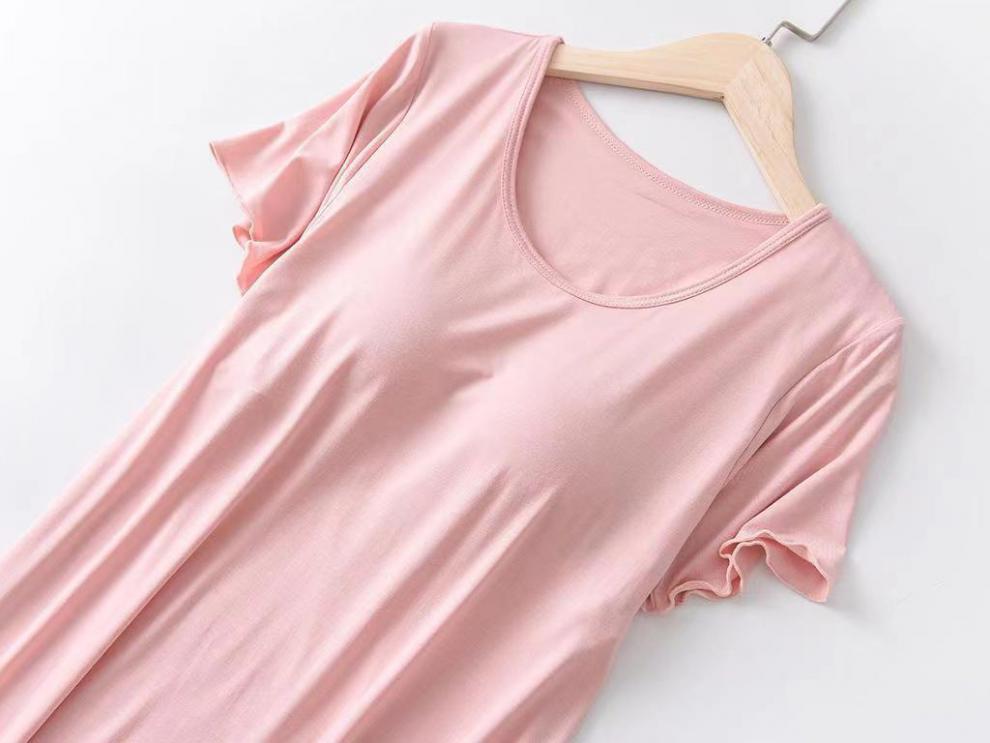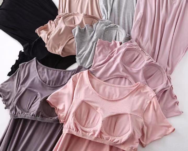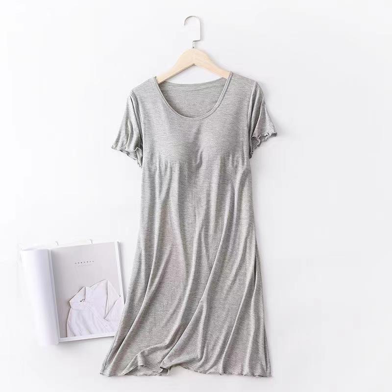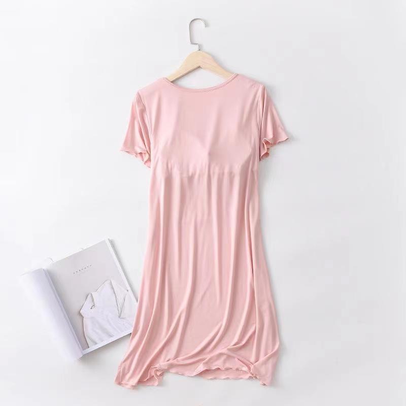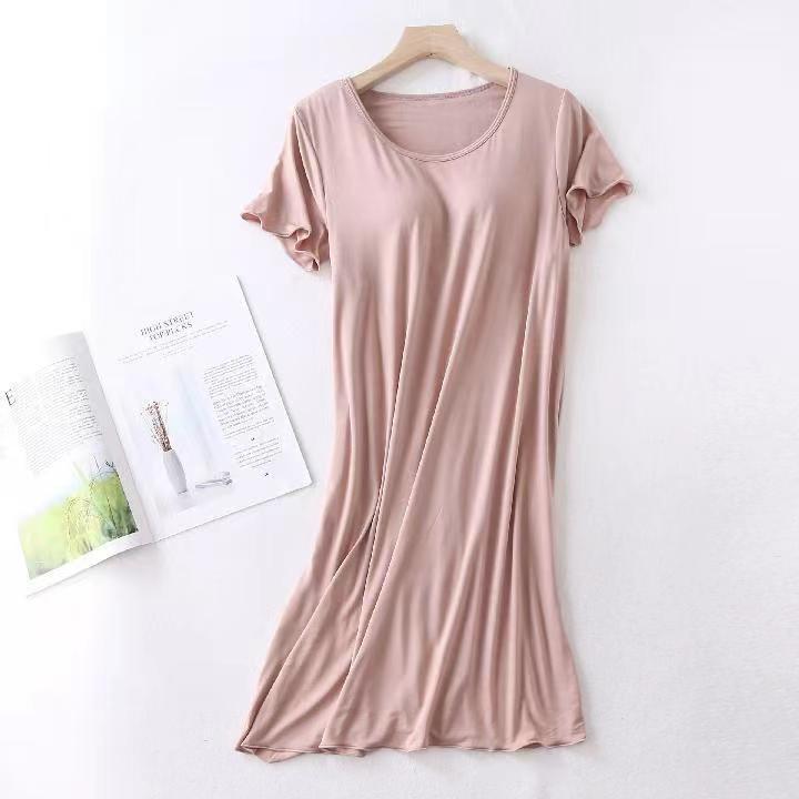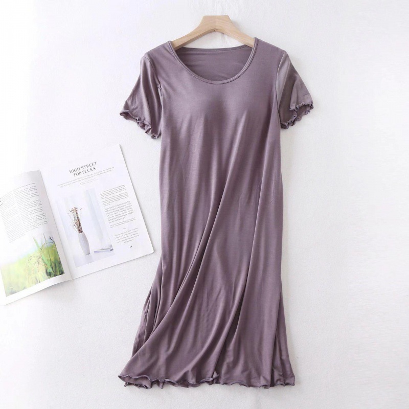 가슴 패드 잠옷을 입은 모달 반팔 잠옷 브라 프리 러플 원피스 여성용 여름 의상 홈 의류스토어 가기