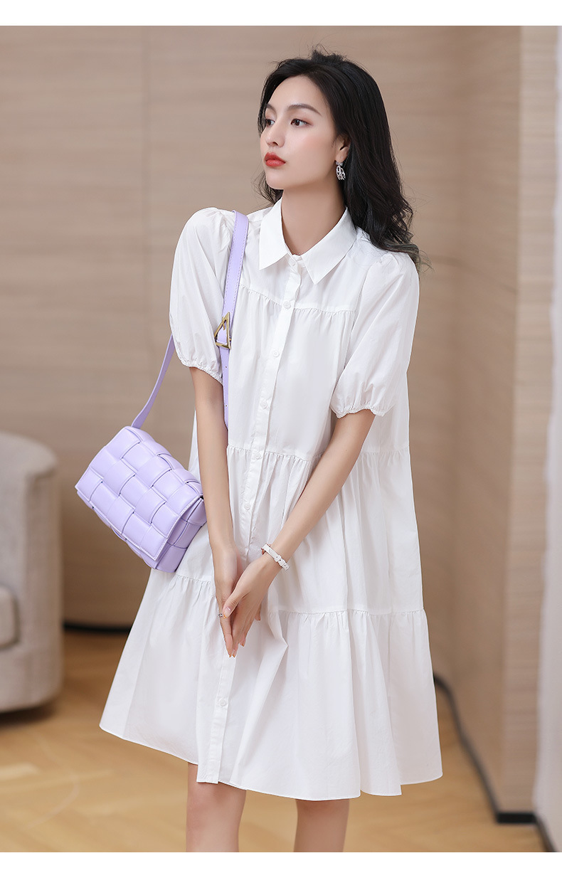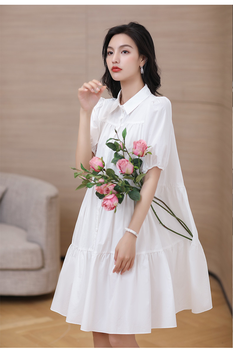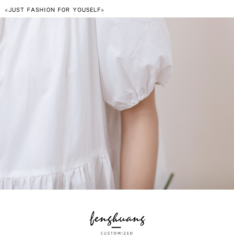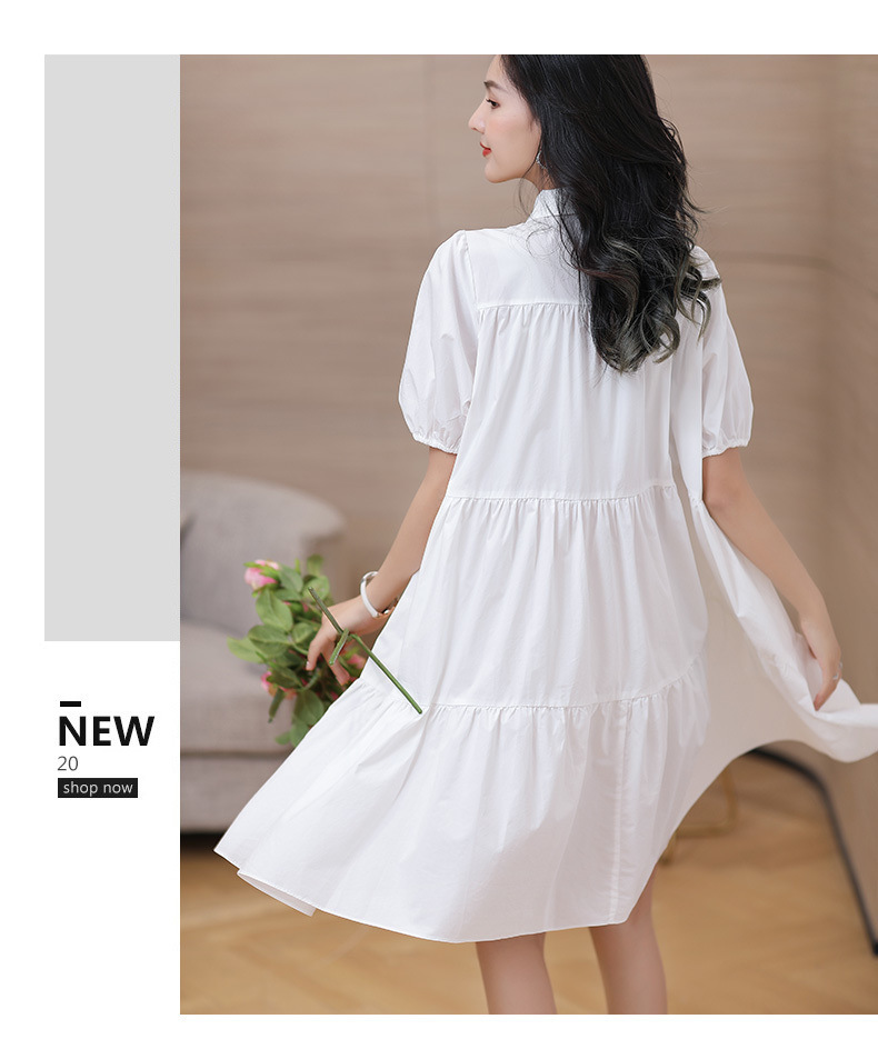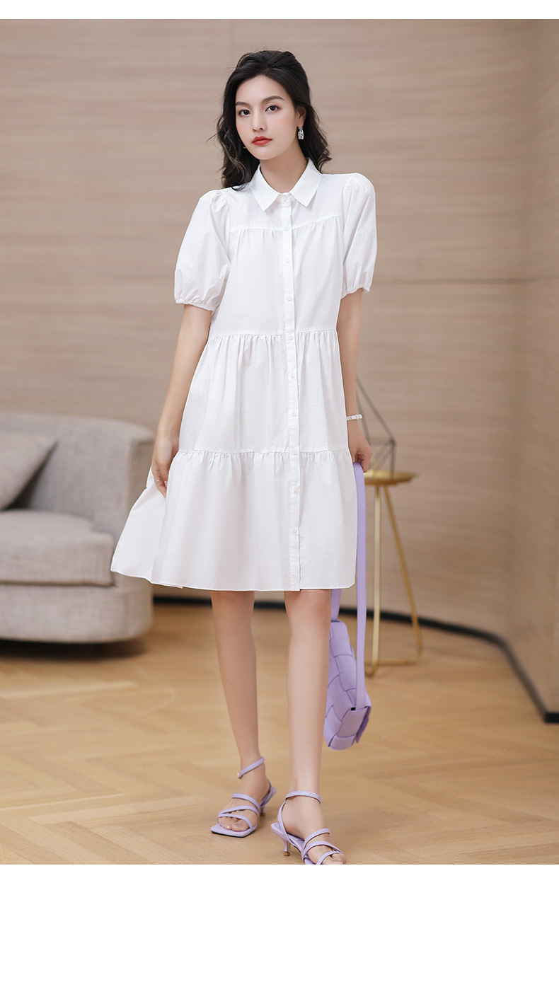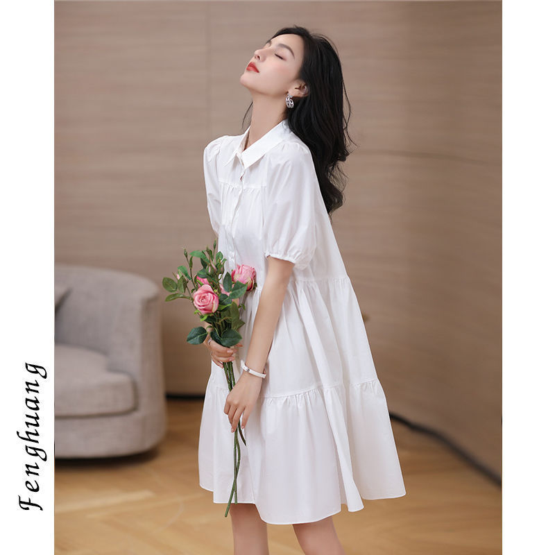 화이트 루즈 슬림 새로운 도착 원피스 여성용 퍼프 슬리브 우아한 프랑스 스타일 셔츠 원피스 여성 디자인 센스 틈새 원피스스토어 가기