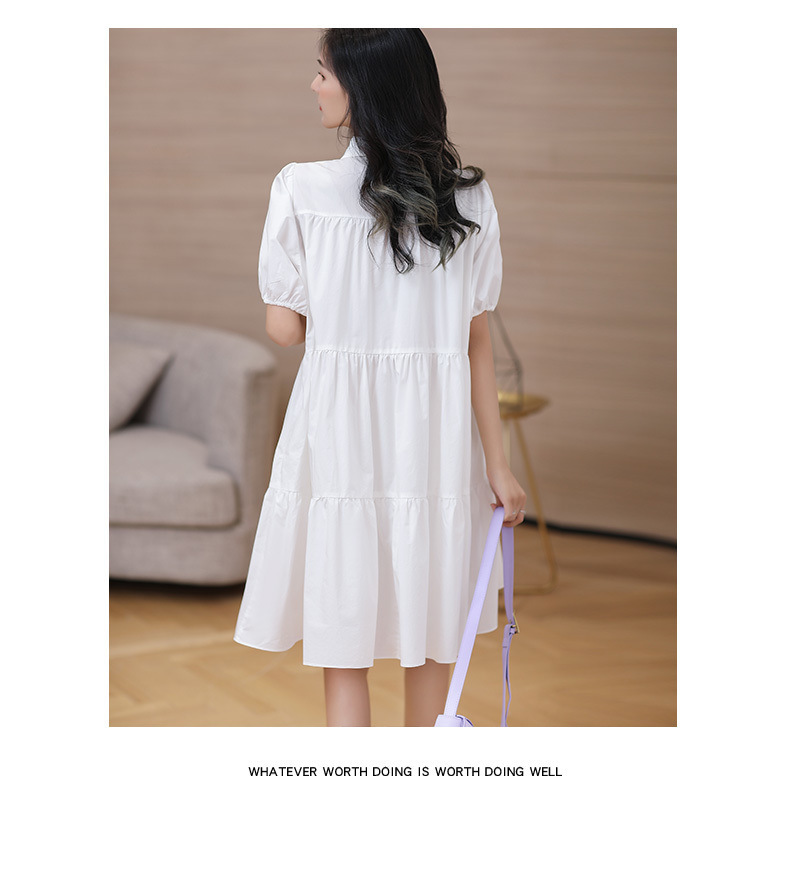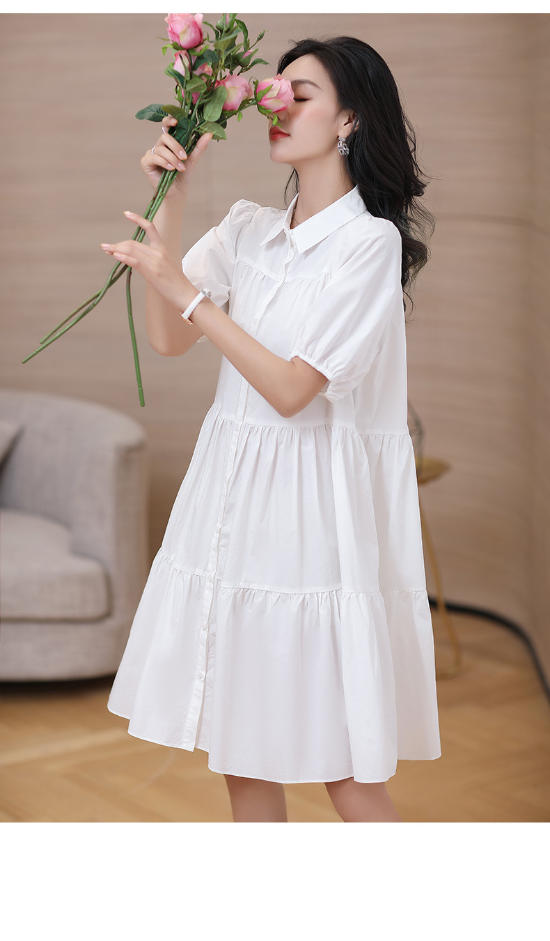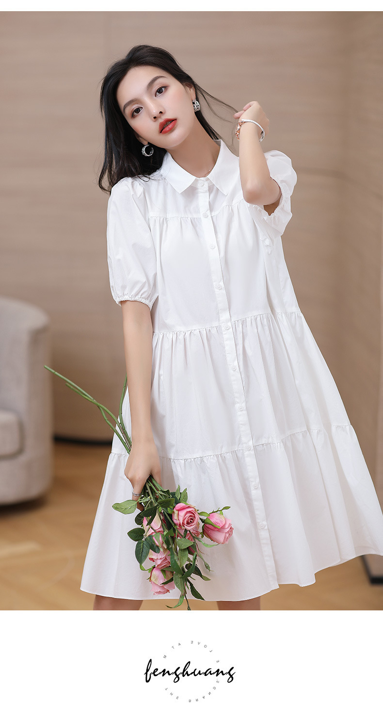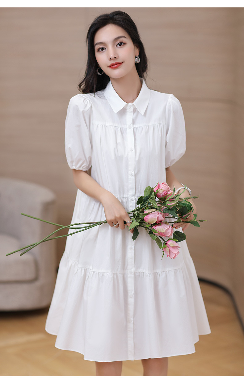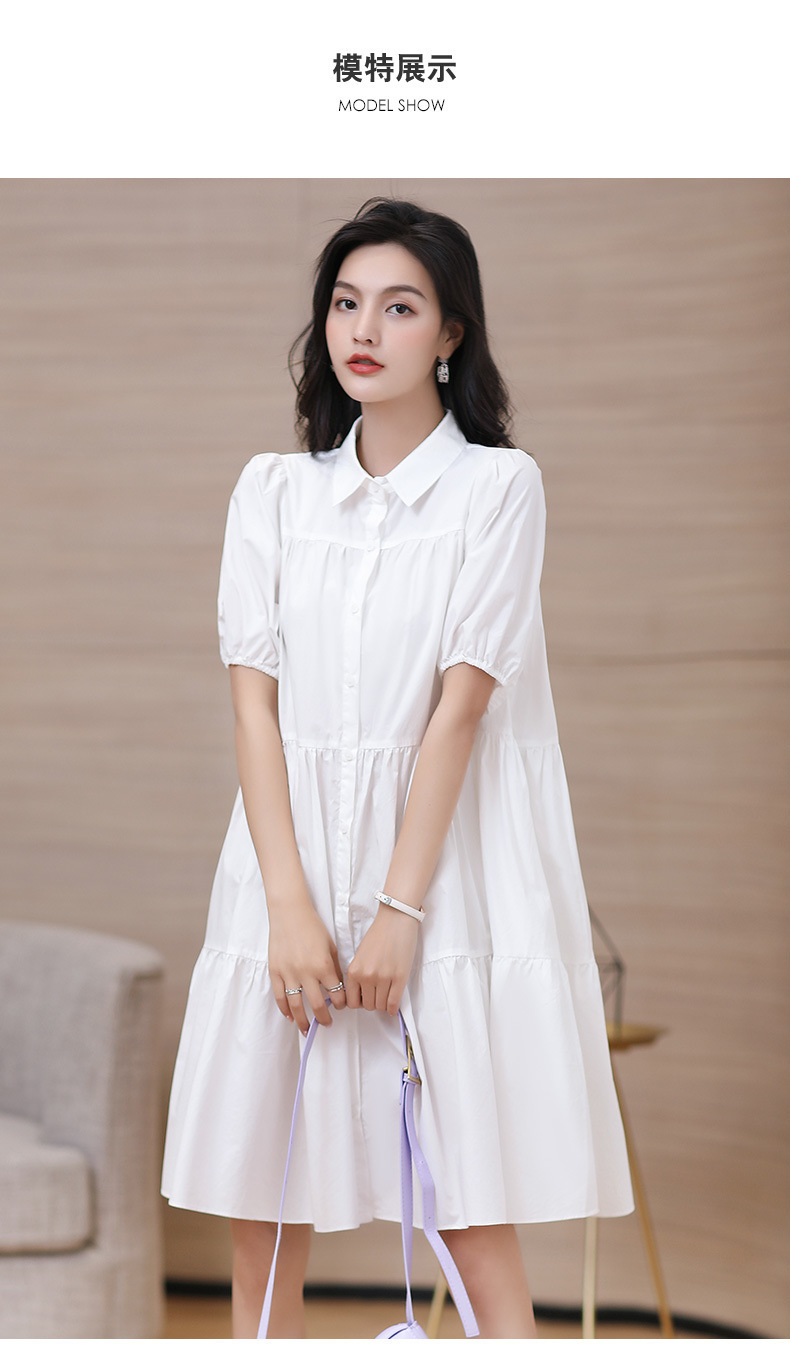 화이트 루즈 슬림 새로운 도착 원피스 여성용 퍼프 슬리브 우아한 프랑스 스타일 셔츠 원피스 여성 디자인 센스 틈새 원피스스토어 가기