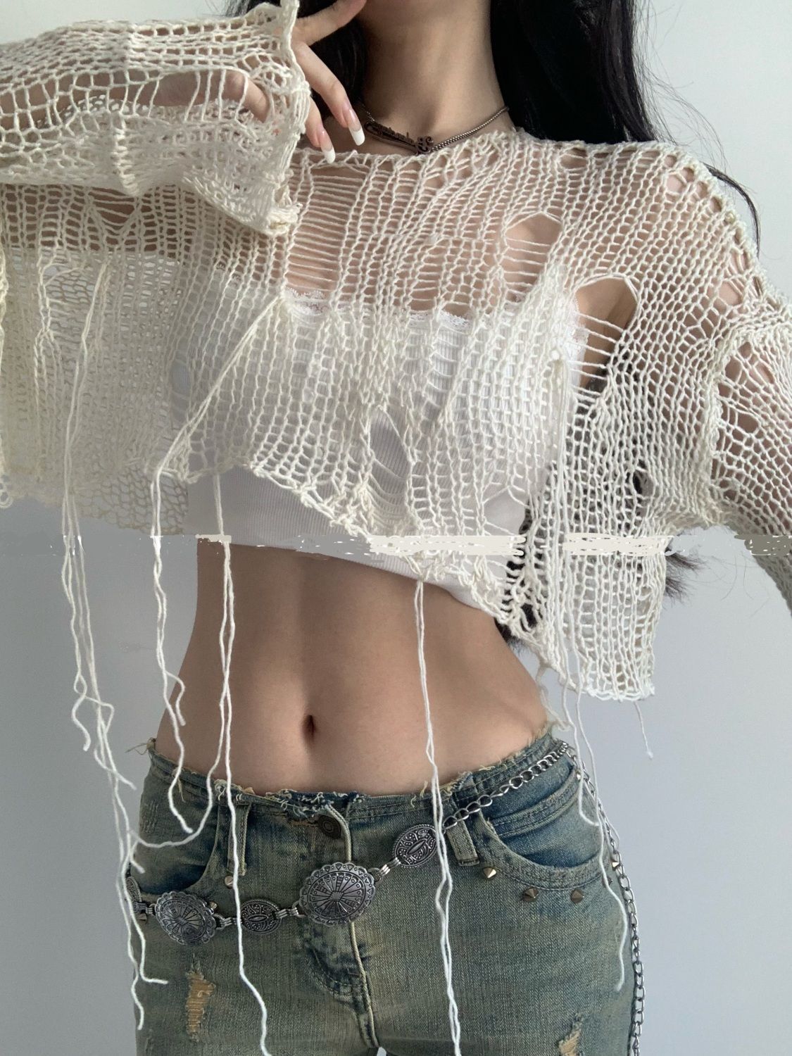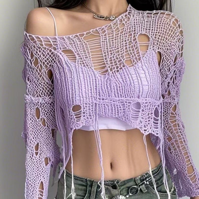 봄과 가을 올 경기 한국식 미국식 빅 루프 홀 중공 관점 느슨한 스파이스 걸스 게으른 데친 니트 니트 블라우스스토어 가기
