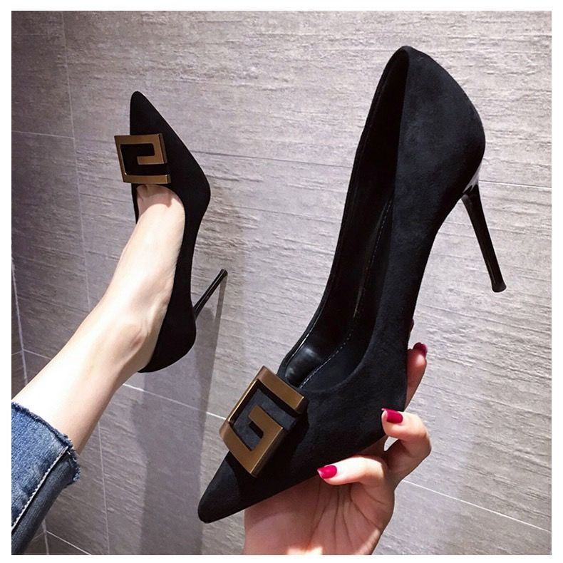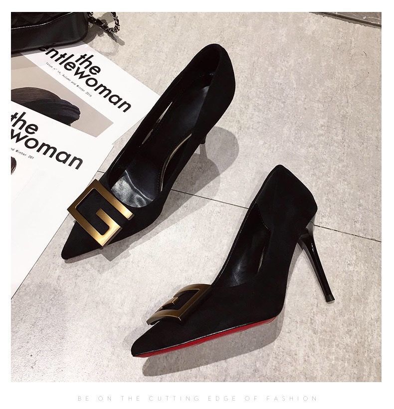 다이파 봄 올매치 포인팅 블랙 프랑스 소녀 섹시 사이버 축하 하이힐 여성 스틸레토 힐-탑 싱글 레이어 신발스토어 가기