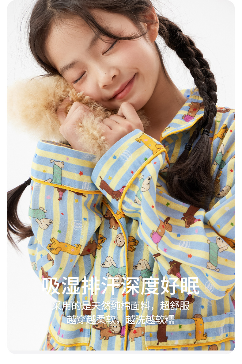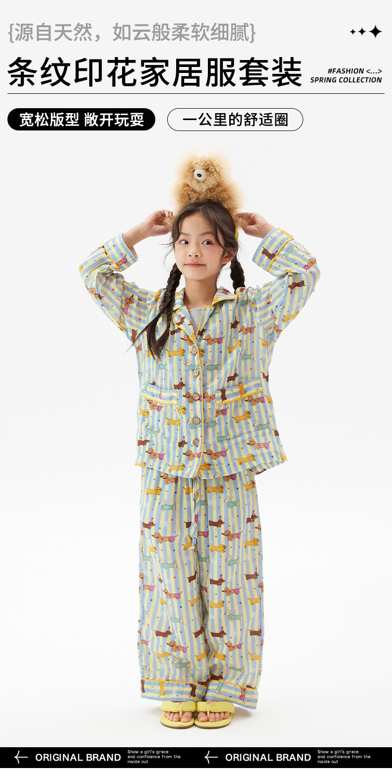 어린이 순면 잠옷 세트 2025 가을 신상 중대형 어린이 남녀 공용 면사 긴팔 긴바지 투피스 세트 트렌디스토어 가기