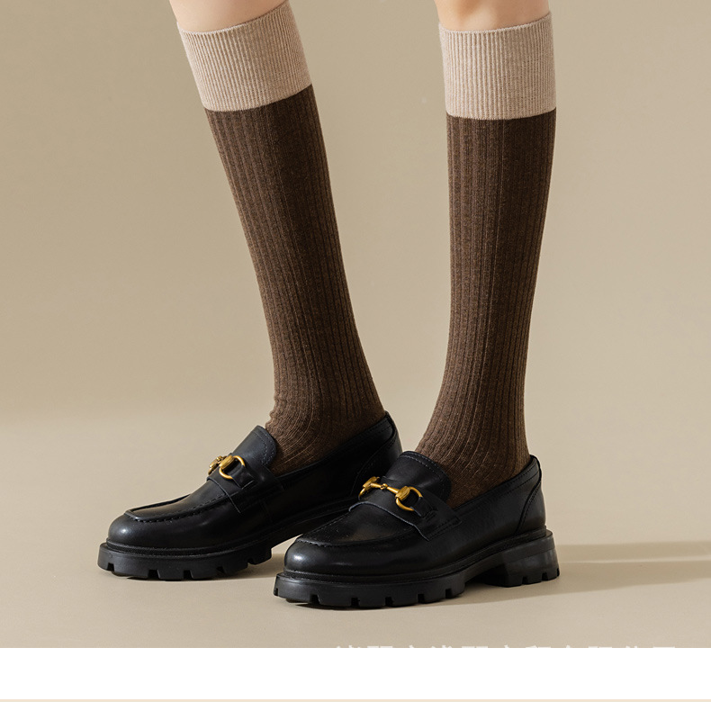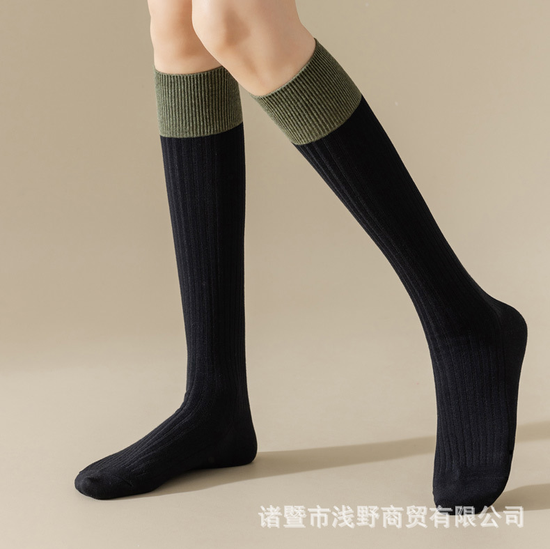 여성용 종아리 양말 봄 가을 순면 롱삭스 하프 종아리 양말 하이삭스 롱레그 양말 사계절 블랙 롱삭스 부츠와 함께 착용 가능