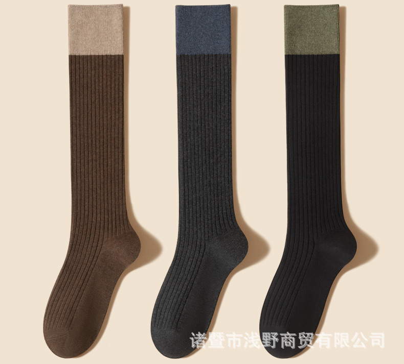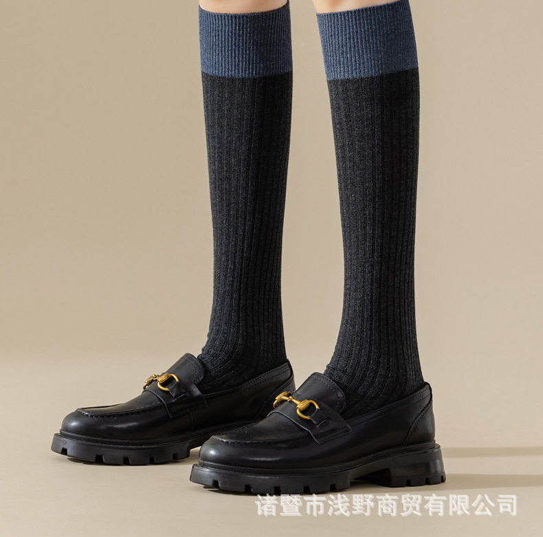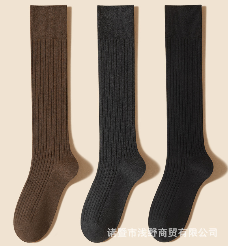 여성용 종아리 양말 봄 가을 순면 롱삭스 하프 종아리 양말 하이삭스 롱레그 양말 사계절 블랙 롱삭스 부츠와 함께 착용 가능스토어 가기