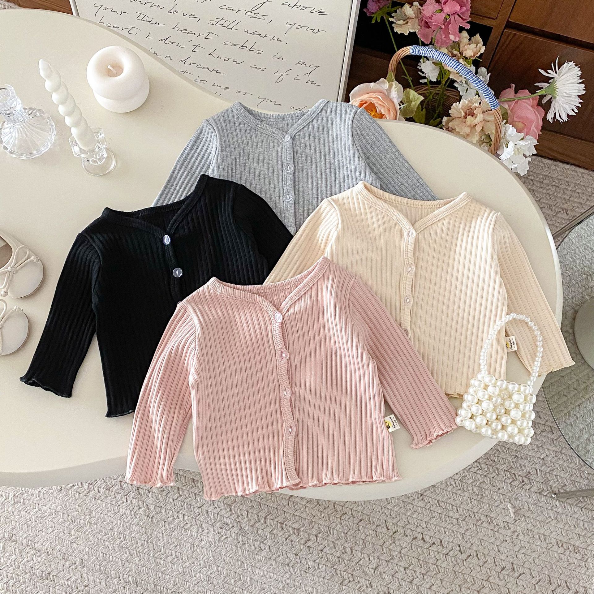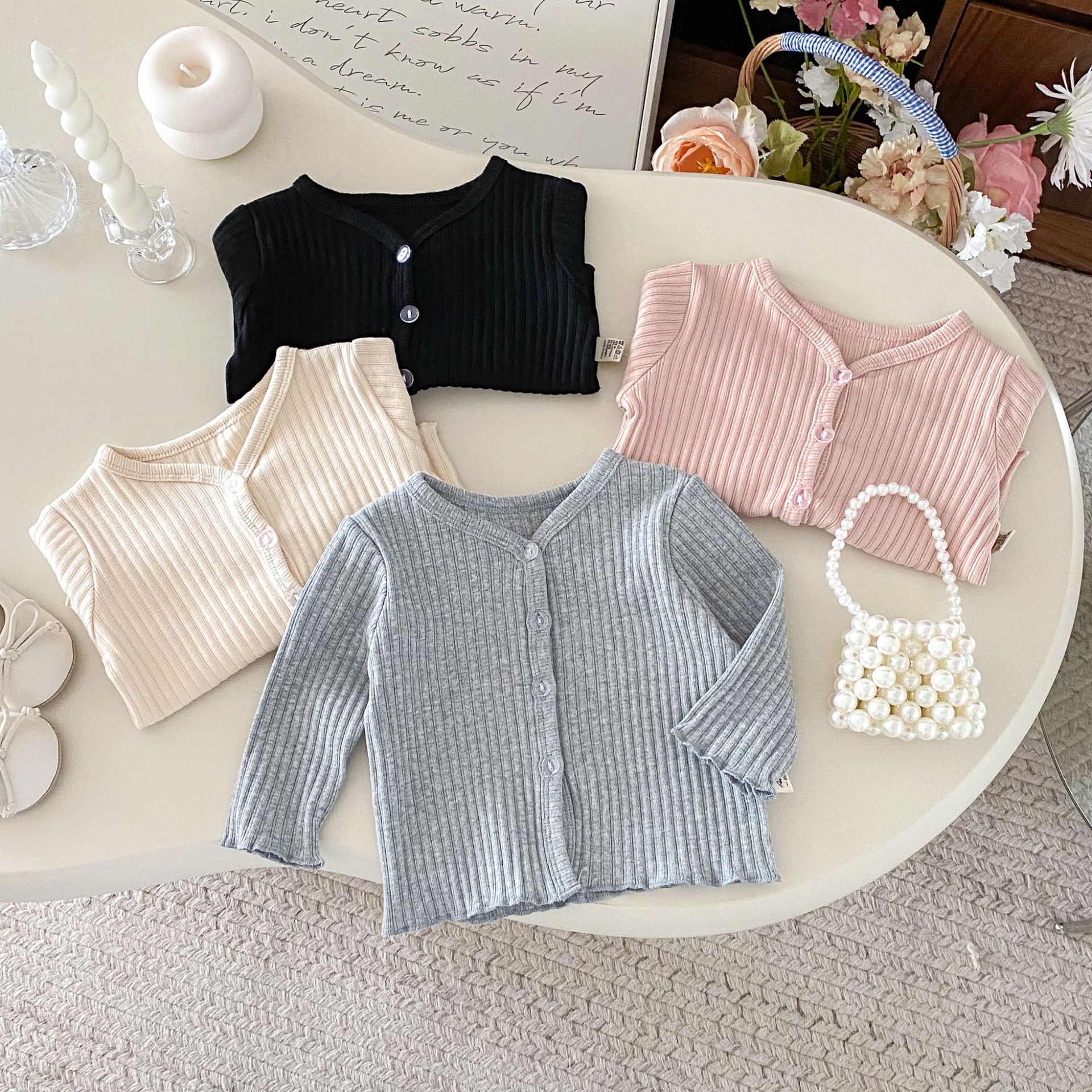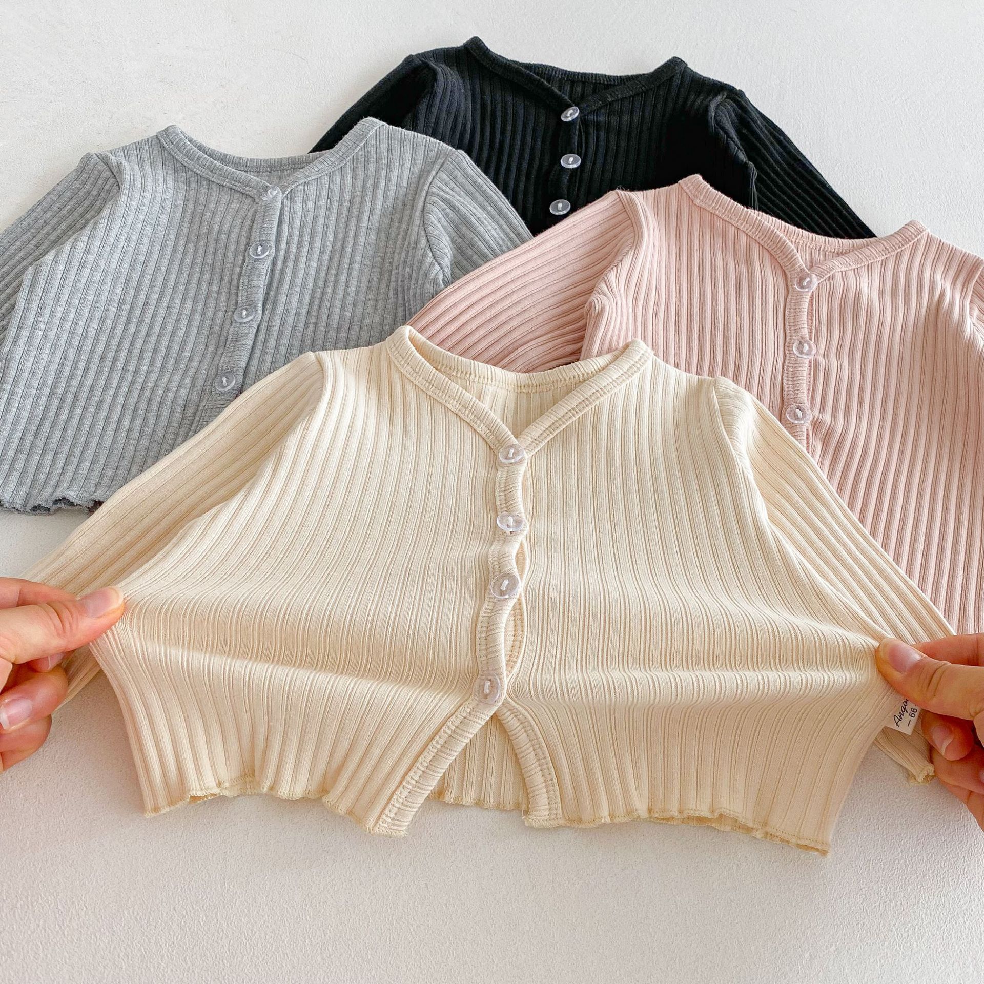 유아 니트 가디건, 여아 아동복, 가을옷, 핏 스트라이프 공주 단색 상의, 패셔너블하고 활용도가 높은 재킷스토어 가기