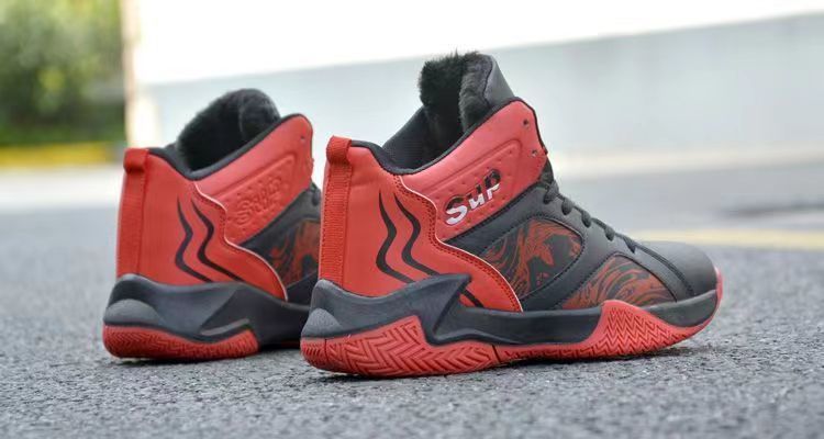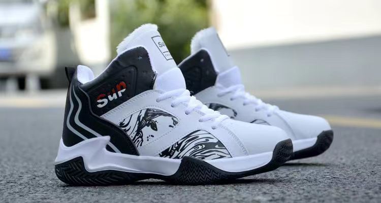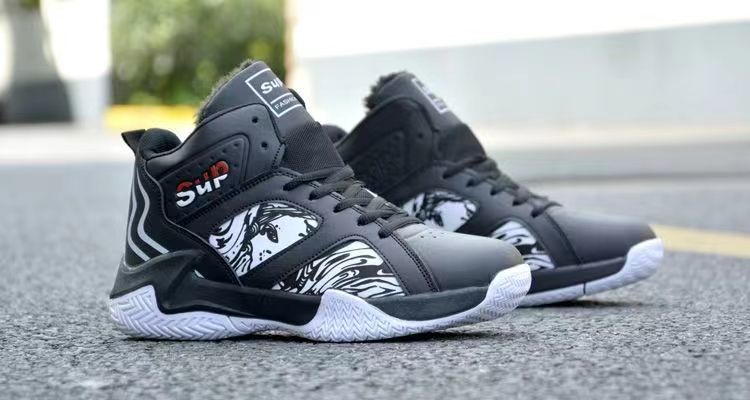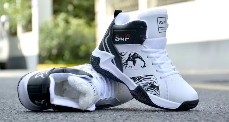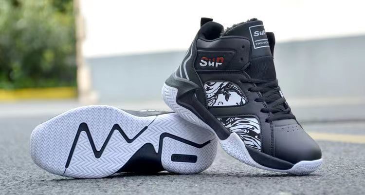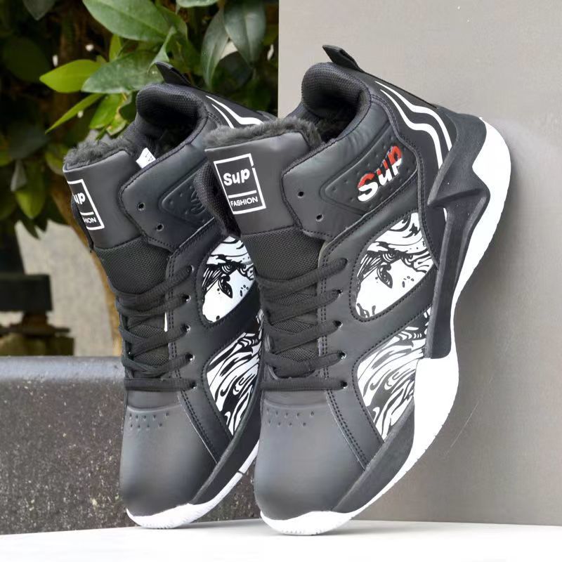 가을과 겨울 남성 신발 통기성 캐주얼 남성 운동화 가죽 농구 신발 내마모성 두꺼운 밑창 하이탑 코튼 신발