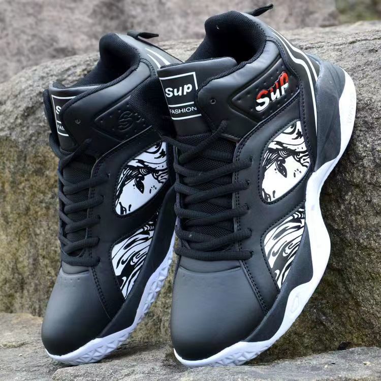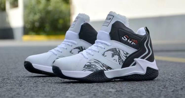 가을과 겨울 남성 신발 통기성 캐주얼 남성 운동화 가죽 농구 신발 내마모성 두꺼운 밑창 하이탑 코튼 신발스토어 가기