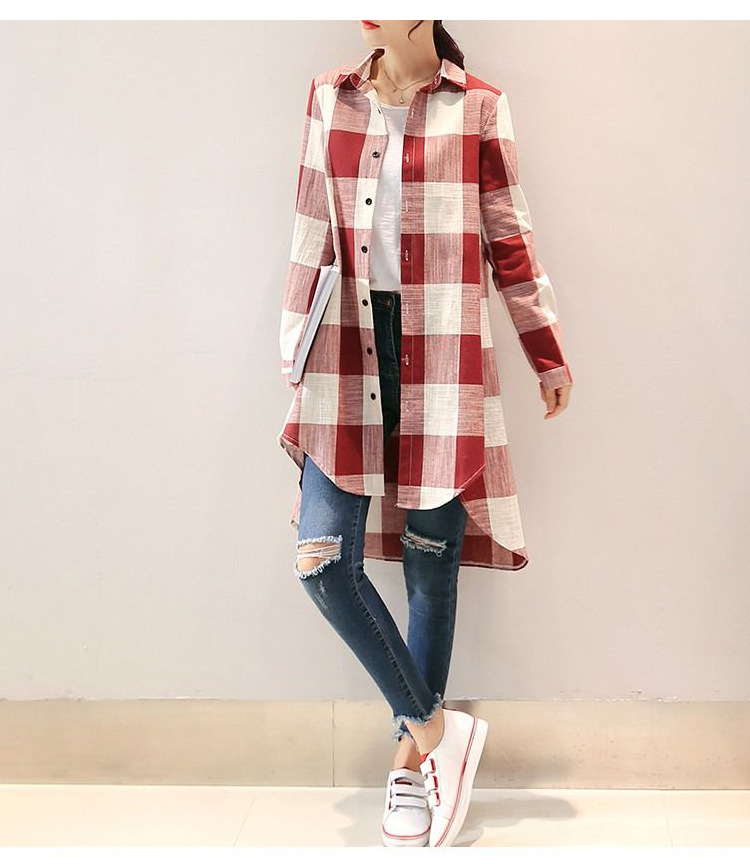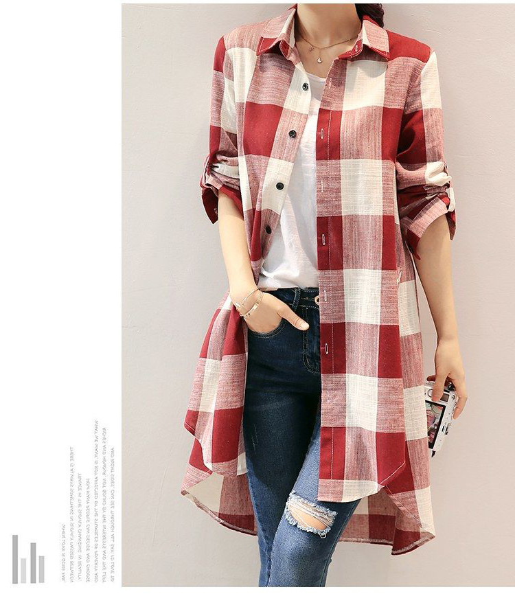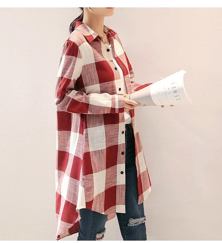 국경 간 선 스크린 셔츠 여성 중장 긴팔 한국식 느슨한 격자 무늬 셔츠 쌓기 최고 캐주얼 얇은 코트