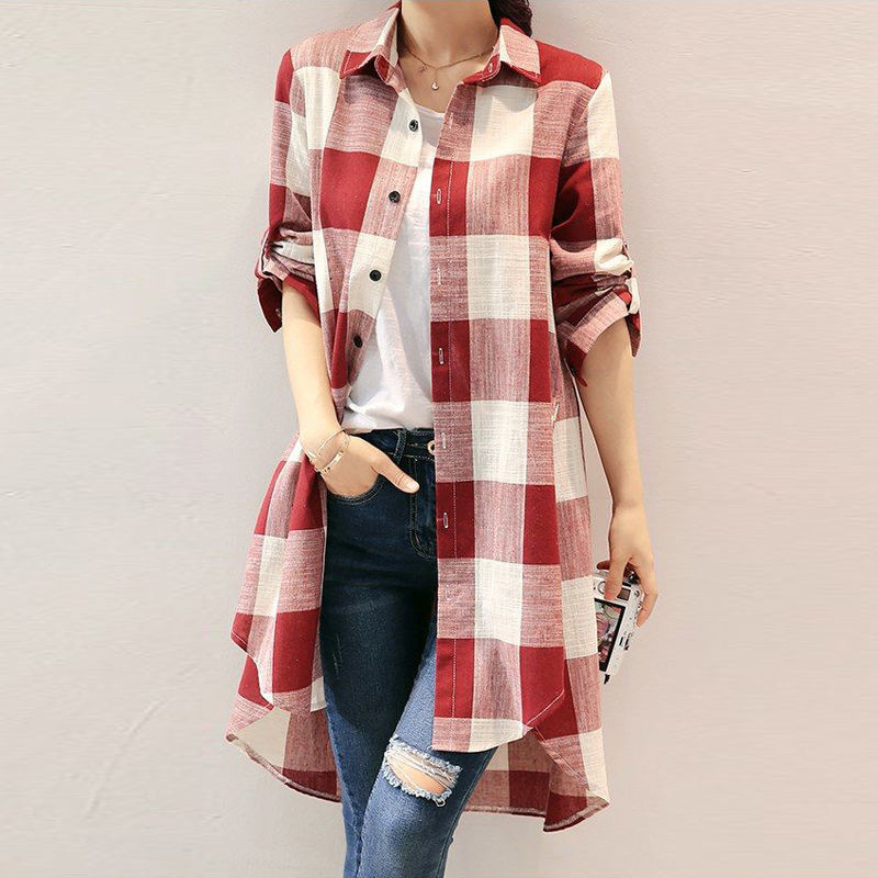 국경 간 선 스크린 셔츠 여성 중장 긴팔 한국식 느슨한 격자 무늬 셔츠 쌓기 최고 캐주얼 얇은 코트스토어 가기