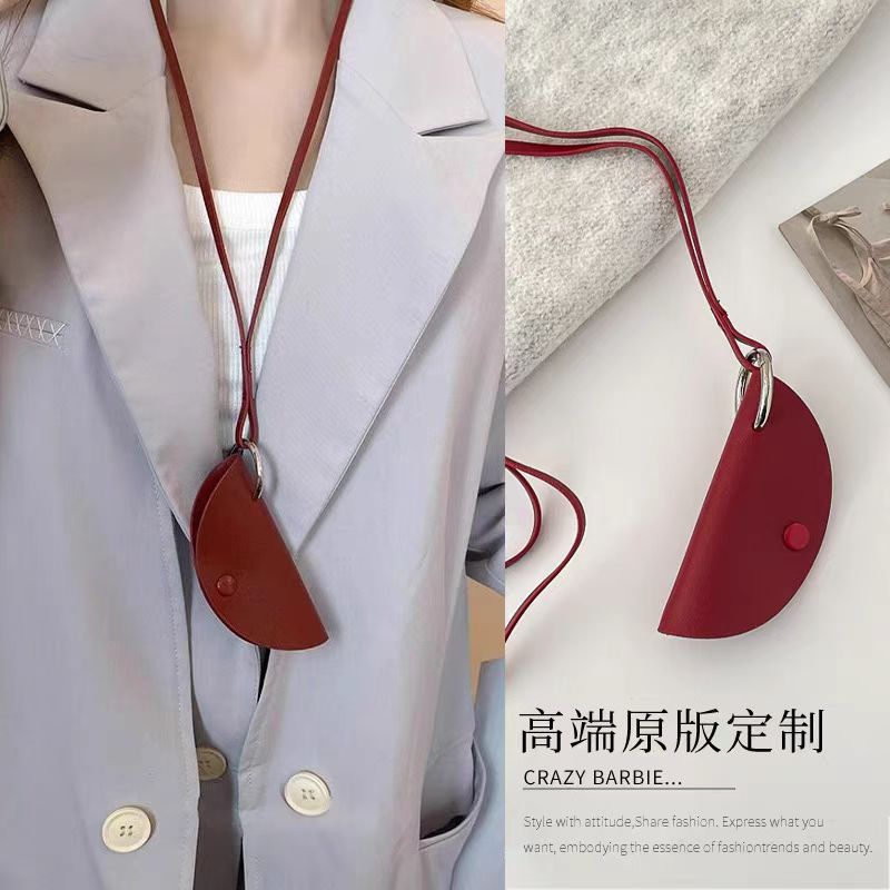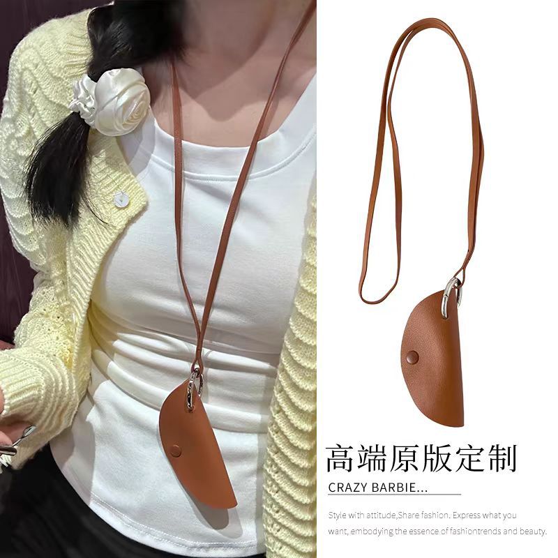 25 새로운 창조적 인 디자인 가방 펜던트 반원형 목 키 체인 목걸이 한국 여성 분위기 가죽 액세서리