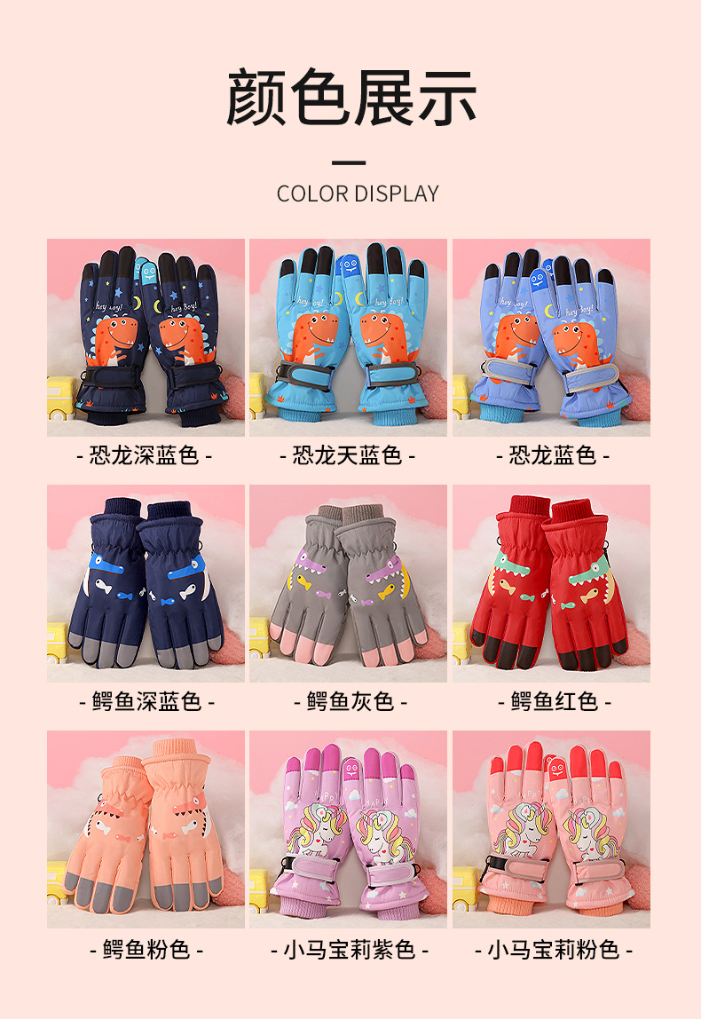 새로운 겨울 어린이 만화 스포츠 승마 스키 장갑 남성과 여성의 미끄럼 방지 두꺼운 기모 따뜻한 장갑 도매